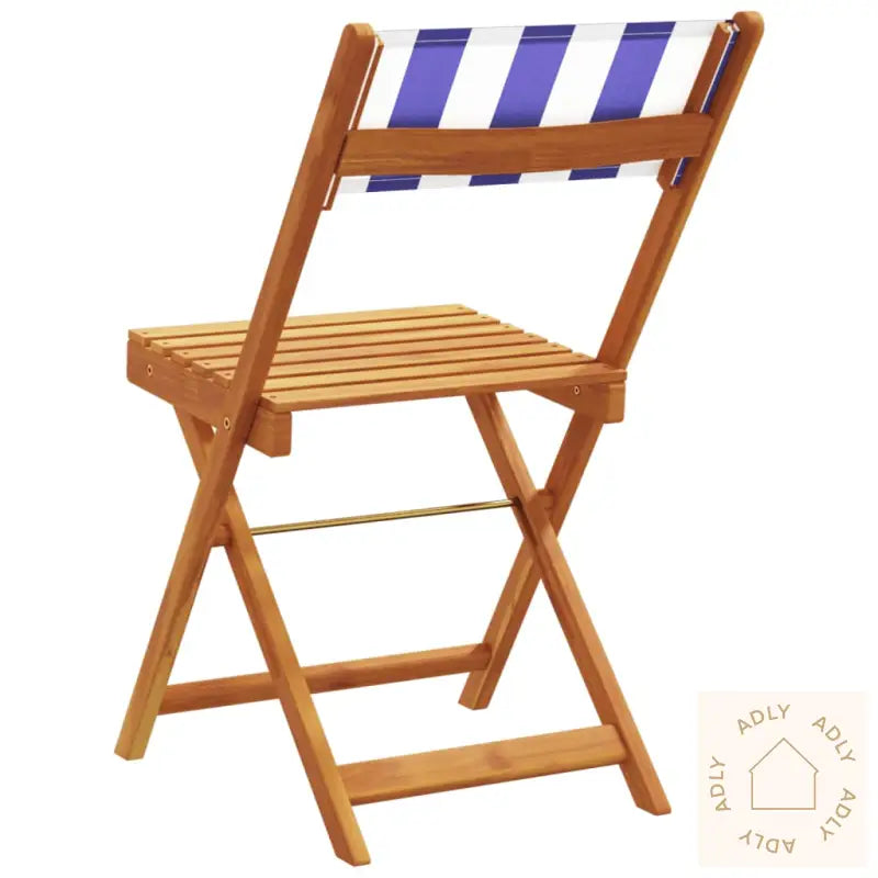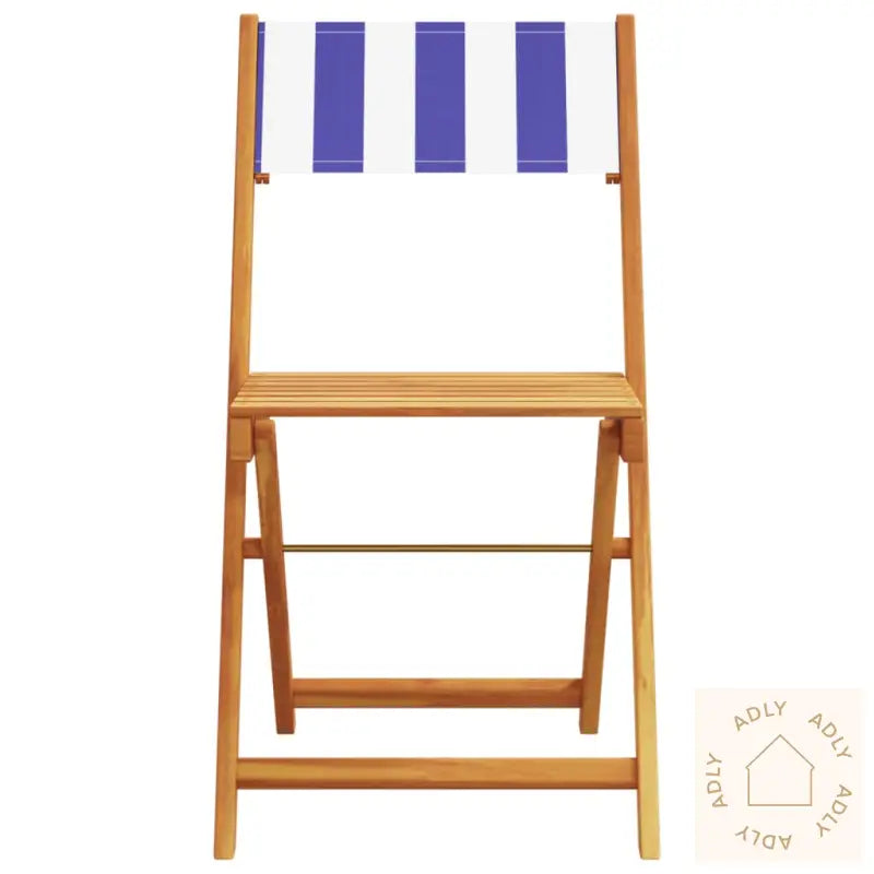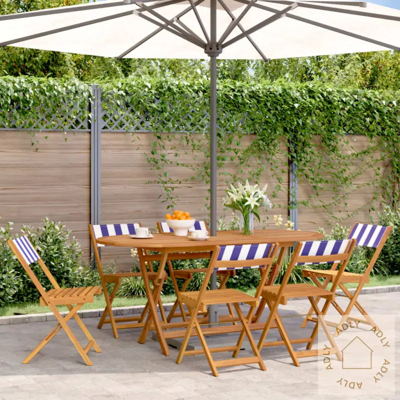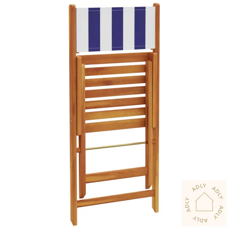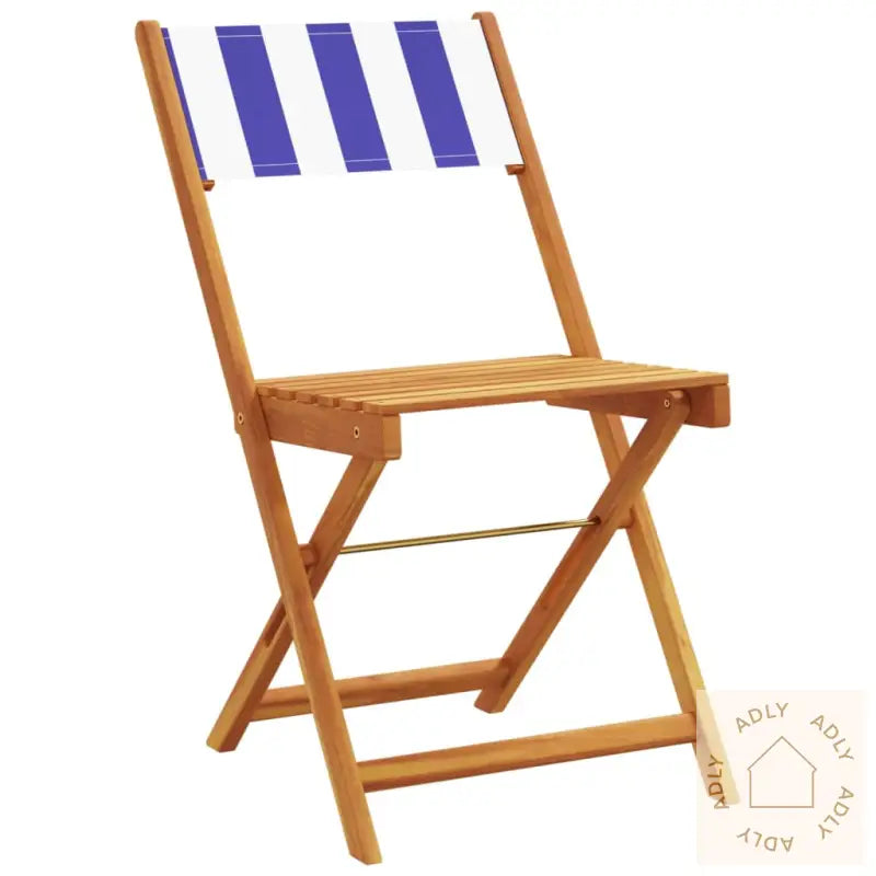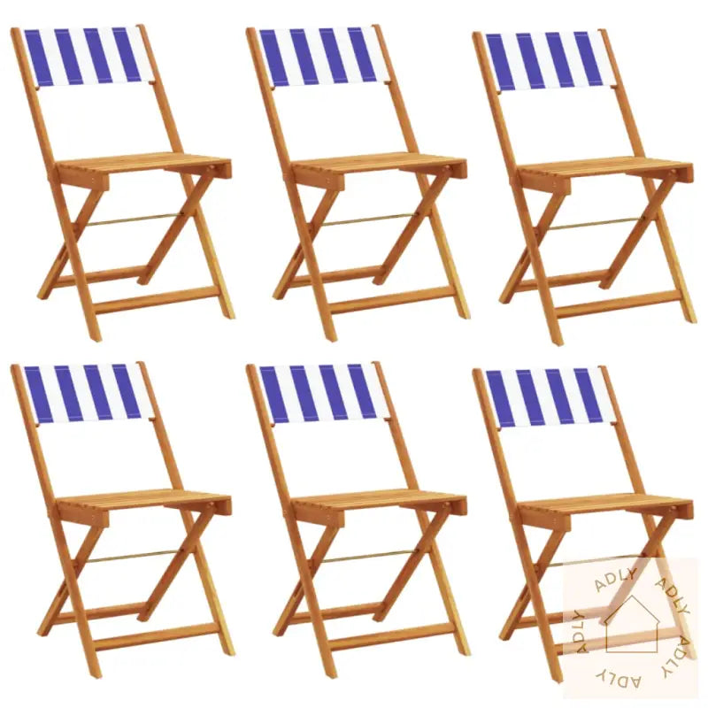 For å holde dine hagemøbler vakre over tid, anbefaler vi å bruke et vanntett trekk når stolene ikke er i bruk.Farger: blå og hvitMateriale: heltre akasie med oljefinish kombinert med slitesterkt stoff (100% polyester)Størrelse: 41 x 52,5 x 102,5 cm (B x D x H)Sete: 37 x 32,5 cm (B x D)Setehøyde fra bakken: 44 cmMaks belastning per stol: 110 kgMontering: enkel montering krevesPute: ikke inkludertLeveransen inneholder:6 x sammenleggbare hagestoler