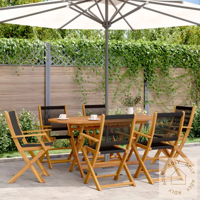 For å holde dine utemøbler i heltre akasie pene over tid, anbefaler vi å bruke et vanntett trekk når de ikke er i bruk. Slik forlenger du levetiden og bevarer utseendet.Farge: svartMaterialer: heltre akasie med oljefinish, polypropylenMål: 54 x 57 x 91 cm (B x D x H)Mål sete: 40 x 38 cm (B x D)Høyde sete fra bakken: 44 cmHøyde armlene fra bakken: 65 cmMaksimal lastekapasitet (per sete): 110 kgMontering kreves: jaPute inkludert: neiLeveransen inneholder:6 x sammenleggbare hagestoler