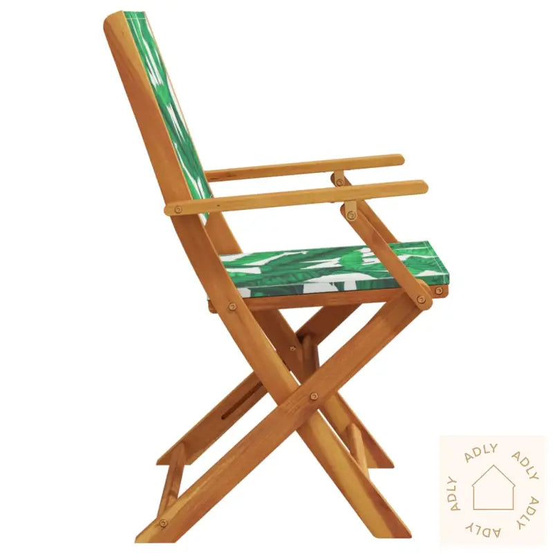 For å beholde det flotte utseendet til stolene over tid, anbefaler vi å bruke et vanntett trekk når de ikke er i bruk.Farge: grønnMaterialer: heltre akasie med oljefinish, stoff (100% polyester)Mål: 54 x 58 x 91 cm (B x D x H)Mål sete: 40 x 38 cm (B x D)Høyde sete fra bakken: 44 cmHøyde armlene fra bakken: 63 cmMaksimal lastekapasitet (per sete): 110 kgMontering kreves: jaPute inkludert: neiMed bladtrykkLeveransen inneholder:8 x sammenleggbare hagestoler