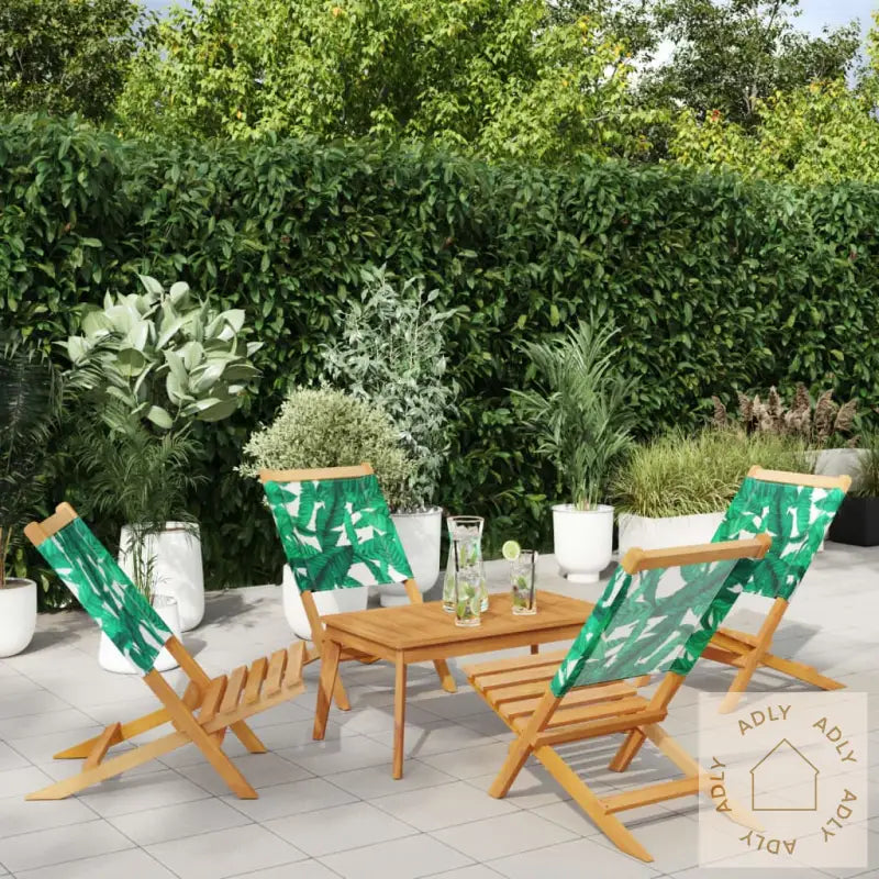 For å holde dine hagemøbler laget av heltre akasie pene lengst mulig, anbefaler vi å bruke et vanntett trekk for ekstra beskyttelse mot regn og fukt.Farge: grønnMaterialer: heltre akasie med oljefinish, stoff (100% polyester)Mål: 41 x 72 x 68 cm (B x D x H)Mål sete: 41 x 28 cm (B x D)Setehøyde fra bakken: 29 cmMaksimal lastekapasitet (per sete): 110 kgMontering kreves: jaPute inkludert: neiLeveransen inneholder:4 x sammenleggbare hagestoler