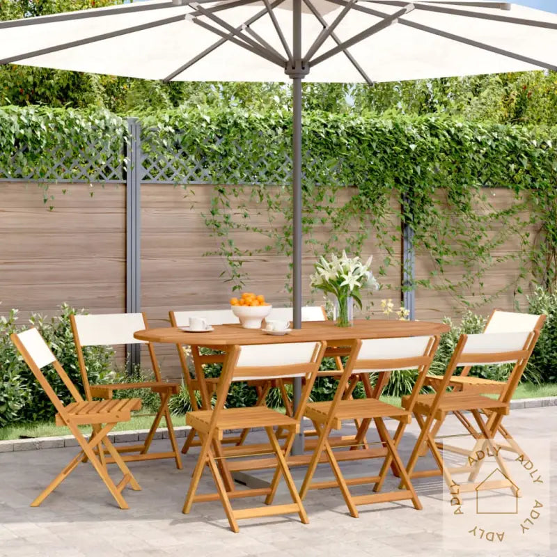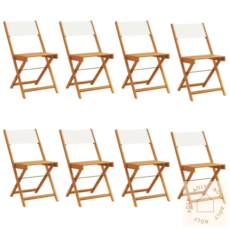 For at dine sammenleggbare hagestoler og andre hagemøbler skal holde seg fine år etter år, anbefaler vi å dekke dem med et vanntett trekk når de ikke er i bruk.Farge: KremhvitMaterialer: Heltre akasie med oljefinish, stoff (100 % polyester)Samlet mål: 41 x 52,5 x 102,5 cm (B x D x H)Mål sete: 37 x 32,5 cm (B x D)Høyde sete fra bakken: 44 cmMaksimal lastekapasitet (per sete): 110 kgMontering kreves: jaPute inkludert: neiLeveransen inneholder:8 x sammenleggbare hagestoler