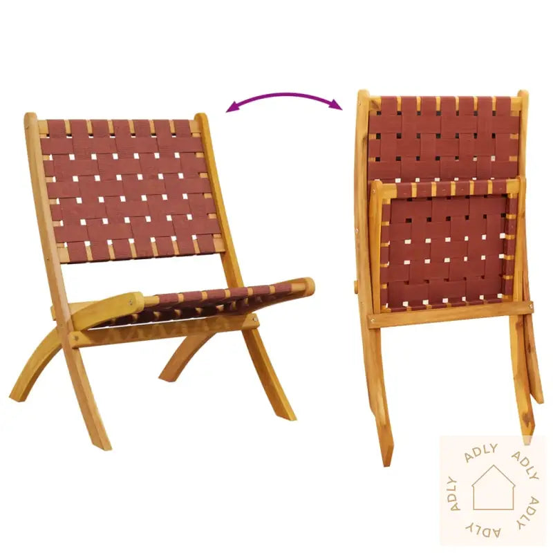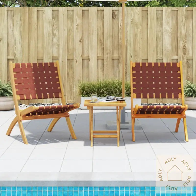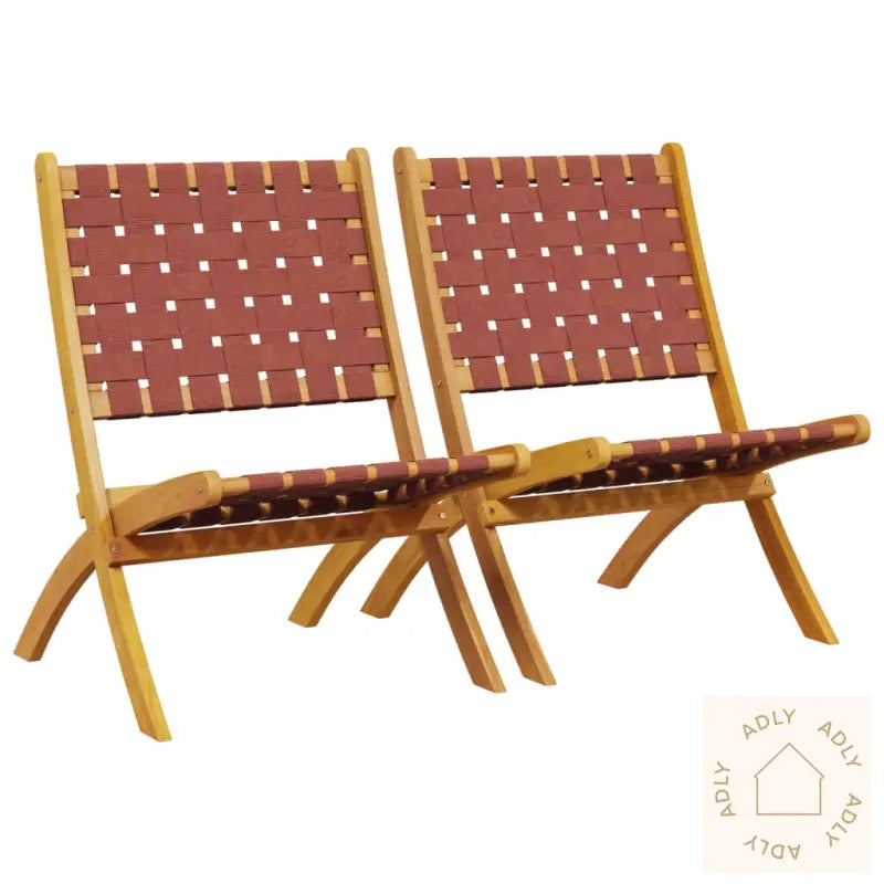 Farger: Rød og brunMaterialer: 100% olefin-stoff, heltre akasie med oljefinishMål: 55 x 73 x 79 cm (L x B x H)Mål sete: 45 x 40 cm (B x D)Maksimal lastekapasitet per sete: 110 kgMontering kreves: jaLeveransen inneholder:2 x sammenleggbare hagestoler
