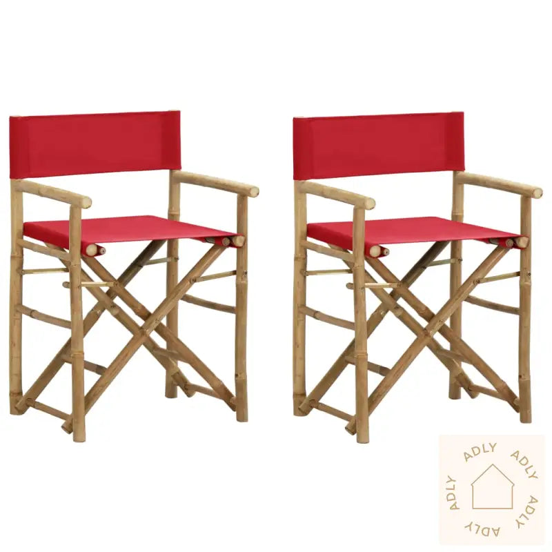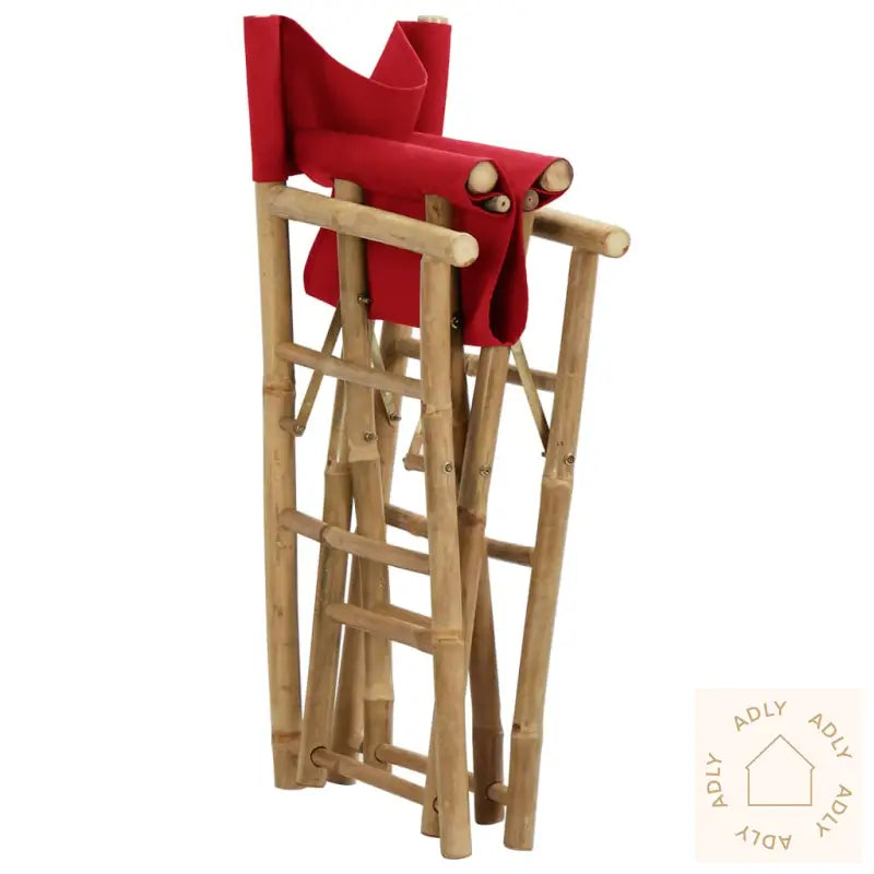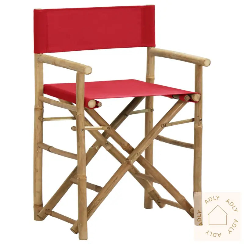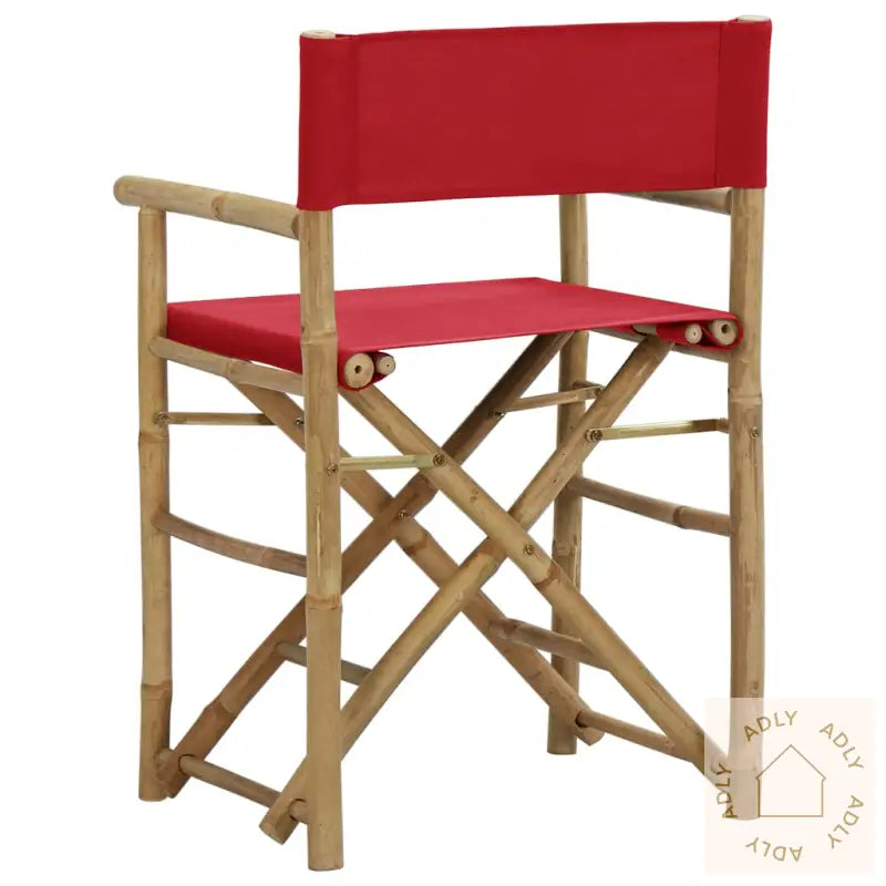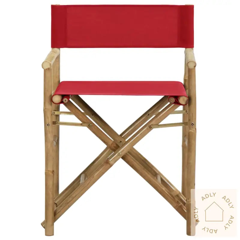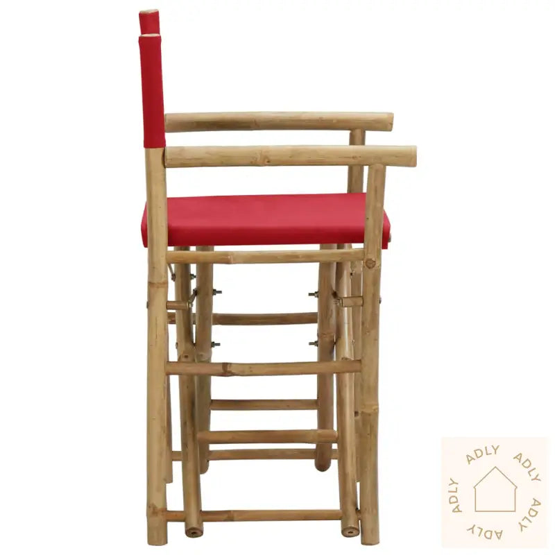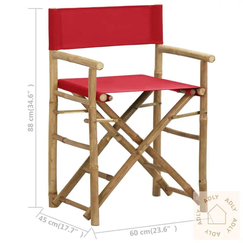 Farge stoff: rødMaterialer: bambus, stoff (100% polyester)Samlet mål: 60 x 45 x 88 cm (B x D x H)Setehøyde fra bakken: 52 cmHøyde armlene fra bakken: 70 cmSammenleggbar for enkel oppbevaring og transportLeveransen inneholder:2 x regissørstoler