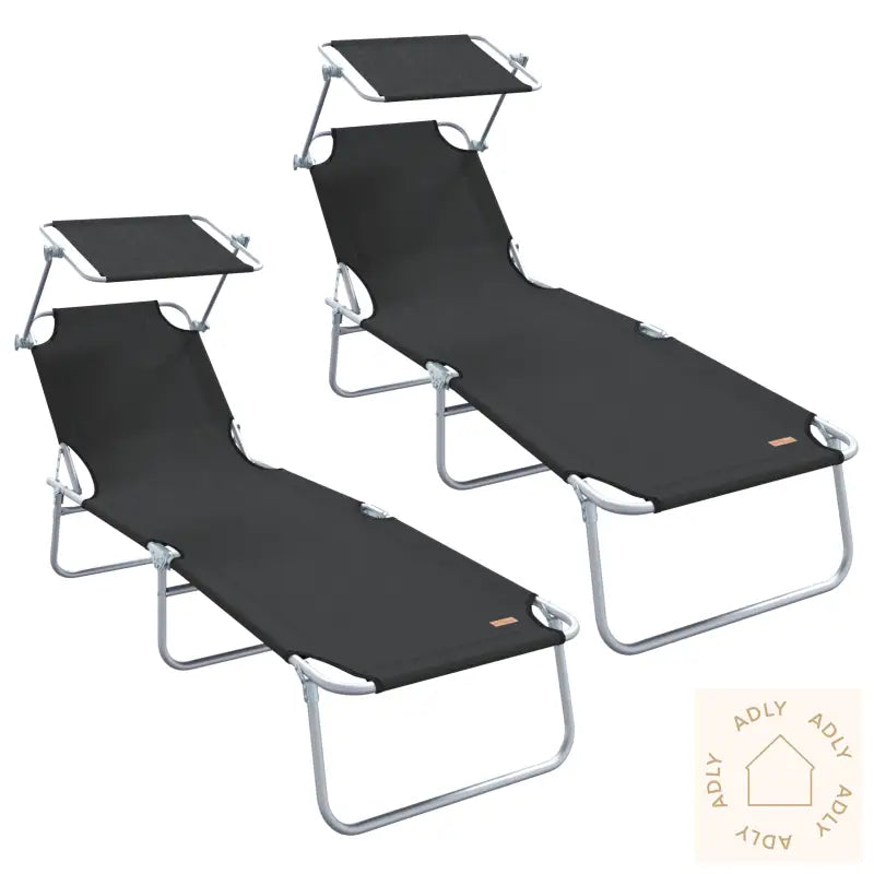 Dette settet med sammenleggbare solstoler gir uterommet ditt et moderne og minimalistisk preg, perfekt enten du vil slappe av alene eller har gjester på besøk. Den stilrene svarte utførelsen gjør at stolene passer godt inn blant andre hagemøbler og møbler til hjemmet. Enten det er på en solrik dag på balkongen eller en lun kveld på terrassen, gir disse solstolene deg komfort og stil.