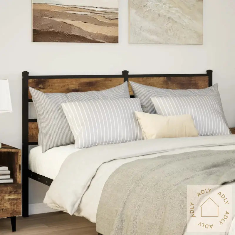 Sengeramme og madrass følger ikke med i pakken.Farger: svart, røkt eik – slik at du enkelt kan matche med dine øvrige møbler eller hagemøbler.Materialer: jern og konstruert tre – kombinerer det beste av styrke og estetisk finish.Samlet mål: 146 x 91,5 cm (B x H)Passer til madrassbredde: 140 cmMontering kreves