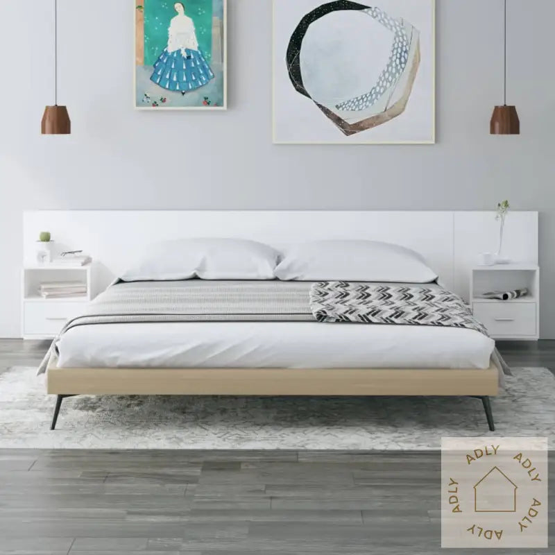 Solid materiale: Den brukes holdbart konstruert treverk, kjent for sin veldig gode kvalitet, glatte overflate og effektiv motstand mot fuktighet. Det gir ikke bare stabilitet og lang levetid, men hjelper også nattbordene og sengegavlen å bevare sitt flotte utseende over tid.Veggmontert design: Både de flytende nattbordene og selve sengegavlen monteres enkelt rett på veggen. Denne løsningen gjør det betydelig enklere å rengjøre rundt møblene og gir optimal utnyttelse av gulvplassen – perfekt for deg som vil holde soverommet ryddig og luftig.Oppbevaringsplass: Nattbordene byr på masse plass til å oppbevare alt fra bøker og briller til ladere og småpersonlige gjenstander, så du slipper rot på natten og alltid har det viktigste lett tilgjengelig ved sengen.ADVARSEL: