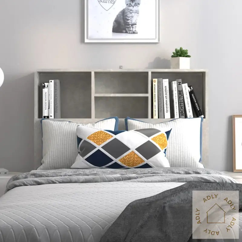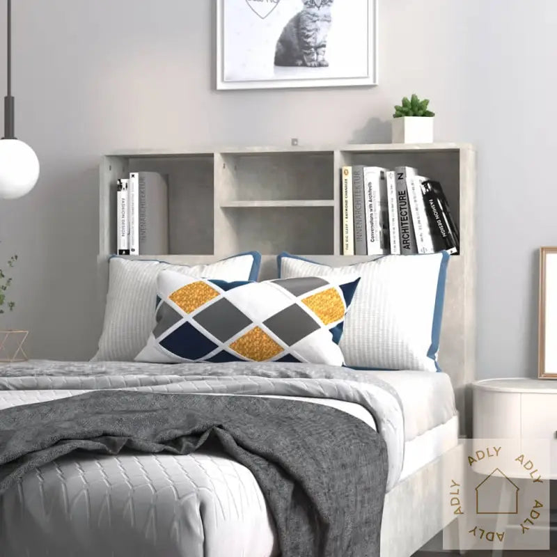 Premium materiale: Det solide, konstruerte treverket på dette møbelet har en glatt finish, noe som sikrer lang holdbarhet og god stabilitet. Dette materialet tåler fuktighet godt, slik at du får ekstra trygghet når møbler velges til hjemmet.Ekstra oppbevaring: Hodegavlen er utstyrt med fire åpne hyller øverst, perfekte for deg som vil ha favorittbøkene, dekorasjoner eller andre nødvendigheter lett tilgjengelig rett ved siden av sengen. Denne praktiske løsningen gir deg mer plass på nattbordet, samtidig som det hjelper deg å holde rommet ryddig og oversiktlig.Moderne design: Bokhylle-hodegavlen kombinerer enkel, tidløs stil med funksjonalitet, slik at den passer inn sammen med andre møbler til hjemmet. Den betonggrå fargen gir et elegant og nøytralt uttrykk, noe som gjør at denne bokhyllen enkelt matcher annen innredning og eksisterende bokhyller og stående hyller.Advarsel: