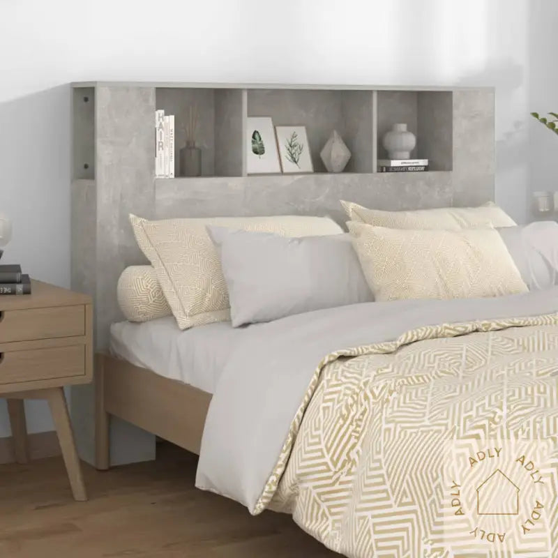 For økt sikkerhet skal de medfølgende festemidlene til vegg alltid brukes, slik at du unngår at produktet velter.Farge: Betonggrå – passer til mange typer møbler og interiørstiler.Materiale: Konstruert tre, holdbart og enkelt å vedlikeholde.Mål: 140 x 18,5 x 104,5 cm (B x D x H), tilpasset for de fleste standard senger.Montering kreves: Ja, leveres flatpakket med enkel monteringsanvisning.Legal Documents: