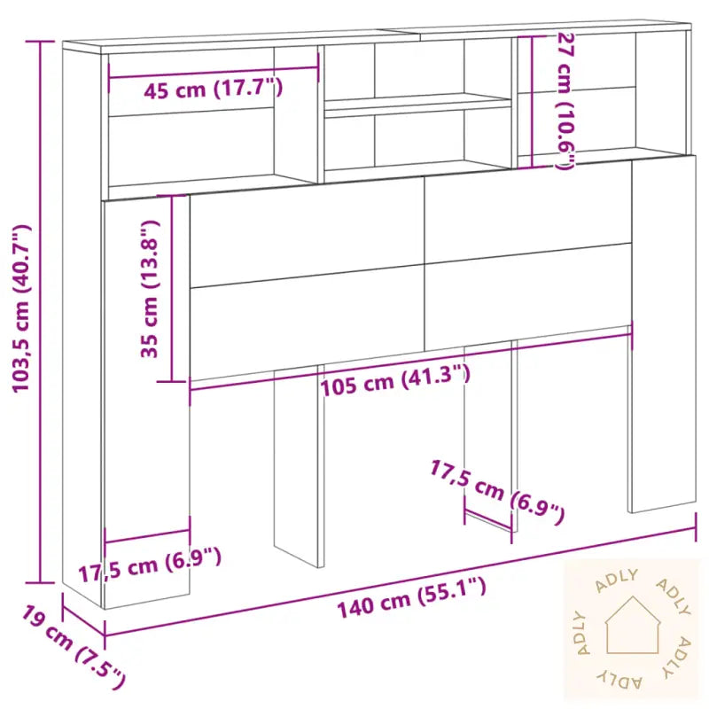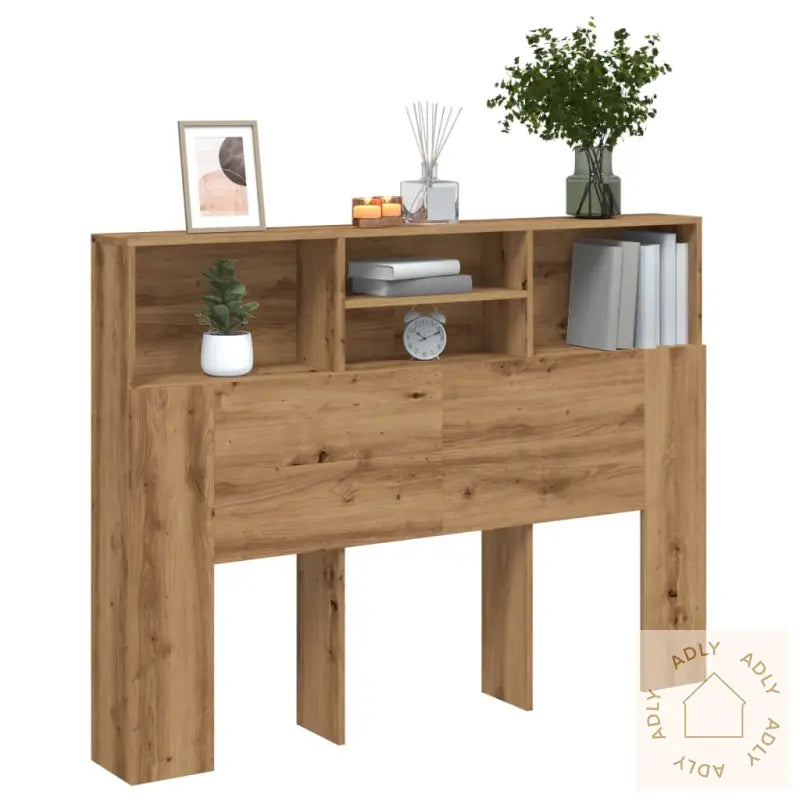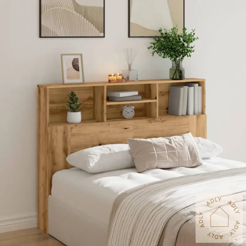 Premium materiale: Dette møbelet er laget av konstruert tre av høy kvalitet. Materialet har en glatt overflate, gir god styrke og stabilitet, og er motstandsdyktig mot fuktighet – så du får et slitesterkt valg som varer lenge.Ekstra oppbevaring: På toppen av denne bokhylle-hodegavlen finner du fire praktiske rom, hvor du enkelt kan organisere bøker, pyntegjenstander eller andre ting du vil ha innen rekkevidde på soverommet.Moderne design: Det tidløse designet gjør det lett å kombinere med andre møbler til hjemmet, enten du liker minimalisme eller ønsker et koselig preg. Denne kombinasjonen av enkelhet og funksjonalitet gjør hodegavlen like fin som den er nyttig.Advarsel: