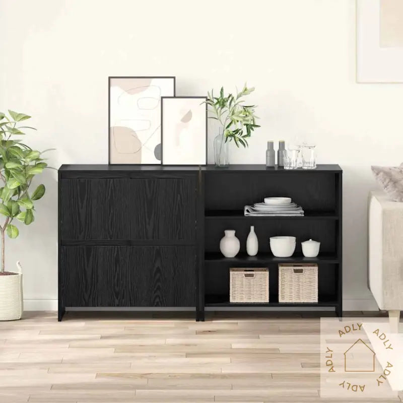 Dette moderne, rektangulære oppbevaringsskapet er en stilfull og praktisk løsning for å holde hjemmet ditt organisert. Den slanke og minimalistiske designen i svart eik gjør at skapet glir rett inn blant moderne møbler til hjemmet, og tilfører eleganse enten det står på kjøkkenet eller i spisestuen. Med sitt tidløse uttrykk gir dette skapet deg både funksjonalitet og et lekkert blikkfang, perfekt for deg som ønsker å kombinere stil og orden. De romslige hyllene gir god plass til servise, glass, eller andre nødvendigheter, slik at du enkelt får oversikt og utnytter plassen best mulig.