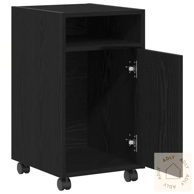 Den matte svarte eikefinishen gir rommet en oppdatert og moderne look, og passer lett inn med andre møbler til hjemmet eller på kontoret.Stabil hylle gjør det enkelt å organisere både personlige eiendeler og kontorrekvisita, slik at du alltid har oversikt.Store hjul sørger for at du lett kan flytte skapet etter behov, uten å måtte løfte eller slite.Konstruksjonen i holdbart treverk sikrer lang levetid, så du får glede av skapet over tid.Med sin kompakte størrelse er dette et supert valg for små rom og trange områder, ideelt for deg som vil maksimere plassen.Farge: SvartForm: RektangulærMateriale: Konstruert treFinish: MattInnendørs/Ute: Kun innendørsAntall dører: 1Cover inkludert: NeiRom: KontorMontering inkludert: NeiDimensjoner: 38 x 33 x 68 cm (B x D x H)Overflatehøyde: 1,8 cmHjuldiameter: 5 cmStige: NeiMerke: Leveransen inneholder: 1 lagringsskapMontering kreves: JaAnbefalt antall personer for montering: 2