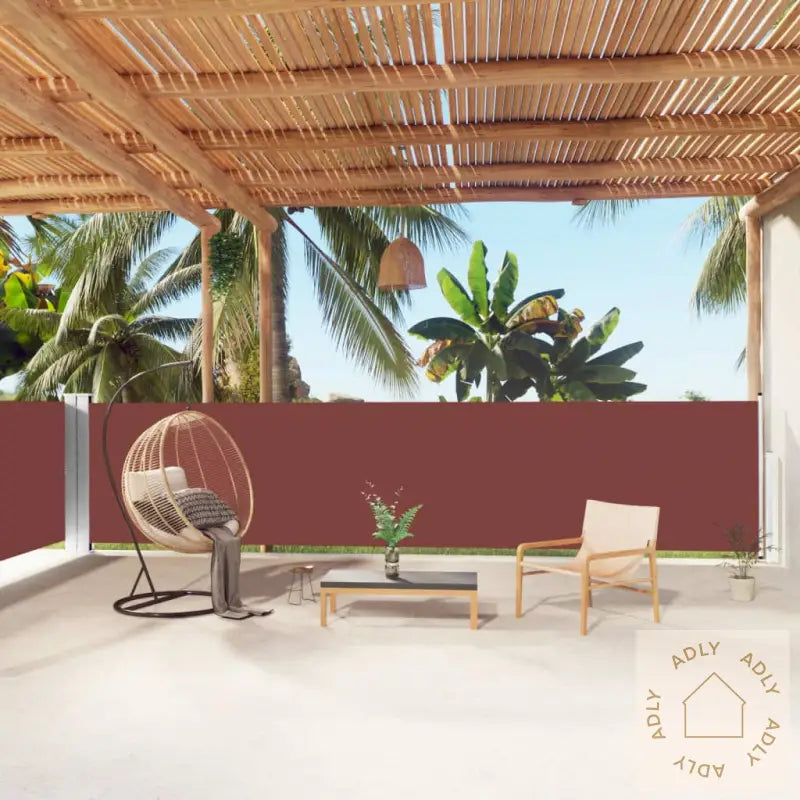 Farge: brunMaterialer: stoff (100% polyester) med PU-belegg, stål, aluminiumMål: 140 x (0-1000) cm (H x B)Uttrekkbar, dobbeltsidig skjermTrekkes automatisk tilbakeInkludert monteringsutstyr og 2 innleggMontering kreves: jaMarkisen leveres komplett med alt du trenger for montering, så det er enkelt å sette den opp sammen med dine andre utendørsmøbler og møbler til hjemmet. Perfekt for deg som vil utnytte utesesongen maksimalt og gjøre uterommet mer komfortabelt og skjermet.
