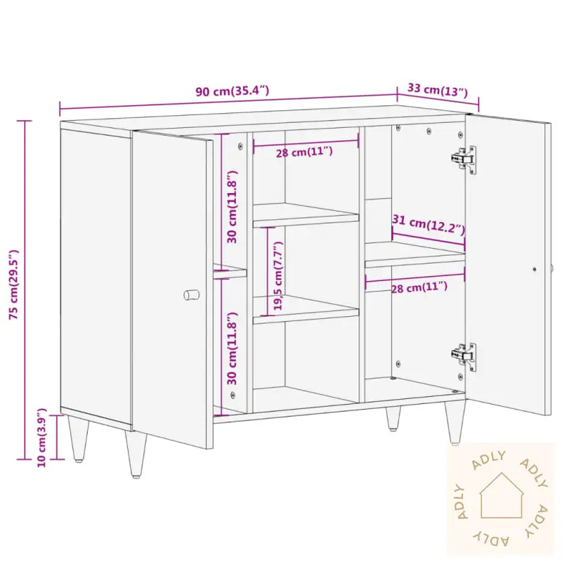 Heltre mango: Sideskapet er laget av heltre mango, et robust tropisk løvtre kjent for sin styrke og holdbarhet, noe som gjør det til et suverent valg for møbler til hjemmet. De unike og elegante årringene i treverket gir hvert skap et spennende og individuelt uttrykk, slik at ingen produkter er helt like.