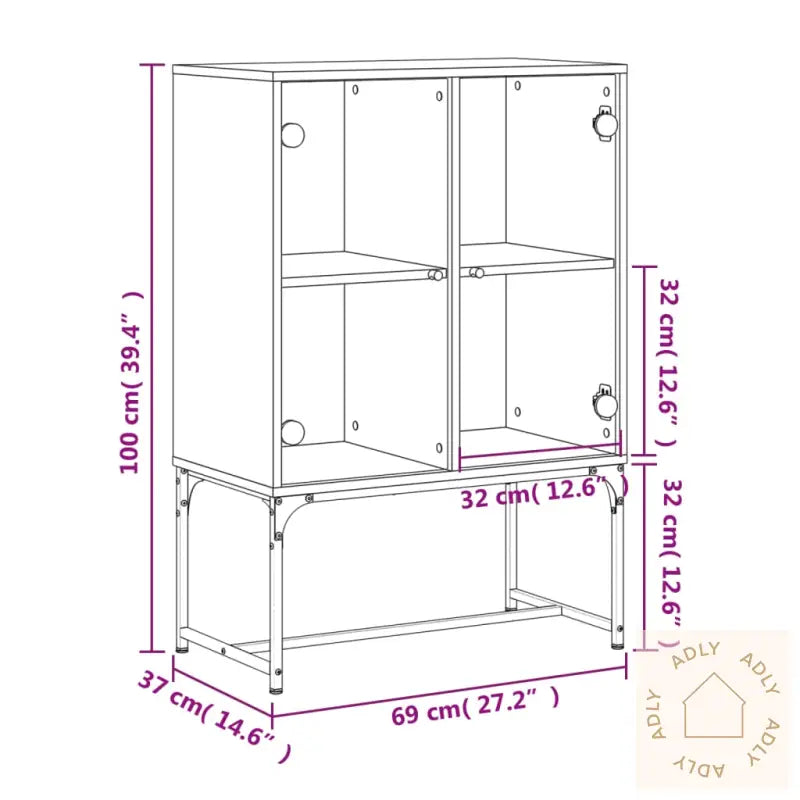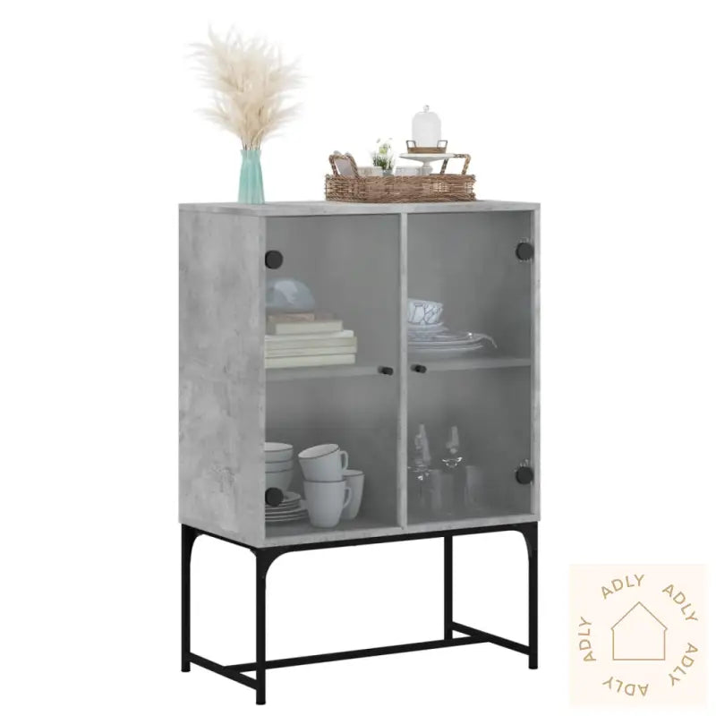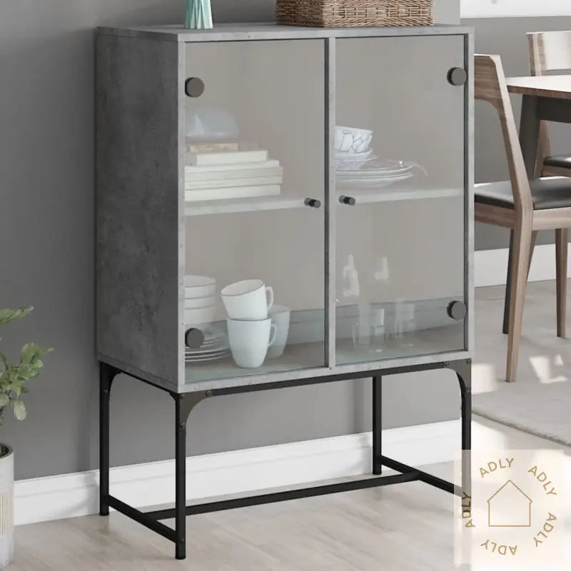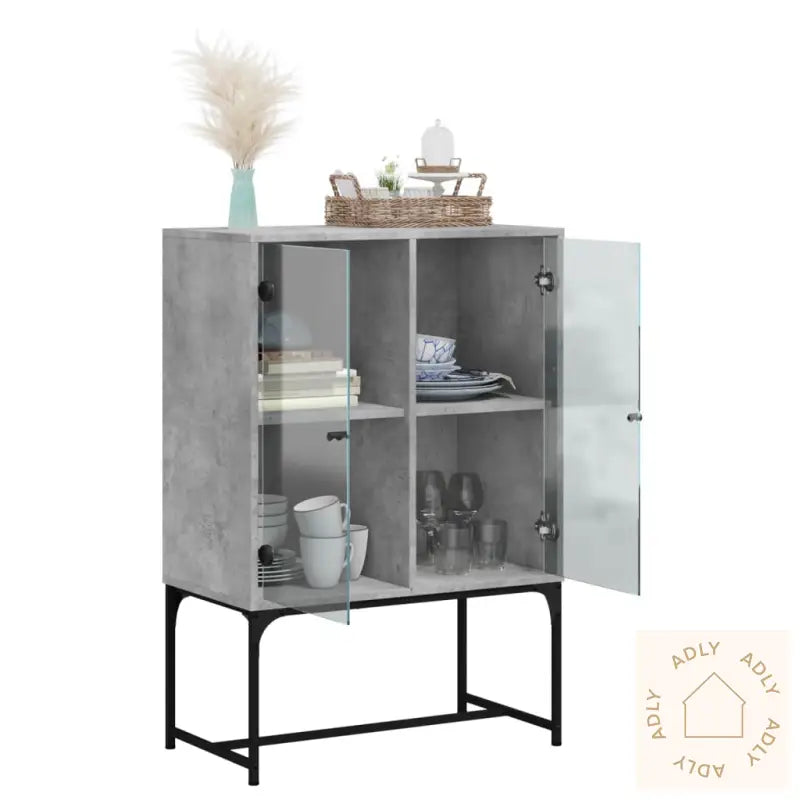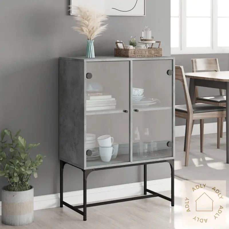 Slitesterkt materiale: Det konstruerte treverket – kombinert med stål og glass – gir skapet ekstra holdbarhet, med en glatt overflate som er enkel å holde ren. Materialene er ikke bare sterke og stabile, men også motstandsdyktige mot fuktighet, noe som gjør dette møbelet til et praktisk valg for daglig bruk.Rikelig med lagringsplass: Sideskapet gir deg mye plass til å oppbevare alt fra klær og servise til bøker eller elektronikk. Her kan du enkelt holde orden på alle nødvendighetene dine, slik at alt er samlet og lett tilgjengelig.Visningsfunksjon: Toppen av skapet egner seg perfekt til å vise fram dine favoritter, enten det er stilige dekorasjoner, grønne planter, fine fotoalbum eller små skatter du vil sette frem.Praktiske glassdører: Hold rotet unna synsfeltet ved å gjemme småting bak dørene. Samtidig lar glassdørene deg kaste et blikk på hva som er inni, og du kan vise frem utvalgte pyntegjenstander på en ryddig måte. Dette gir et luftig uttrykk og løfter innredningen.Advarsel: