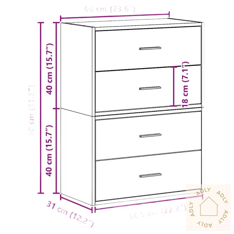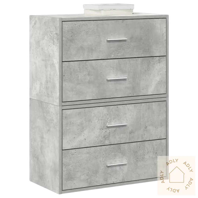 Stabilt og slitesterkt materiale: Skapene er laget av konstruert tre – et robust materiale som holder over tid og tåler både daglig bruk og fuktighet. Den jevne overflaten gjør at skapene ser flotte ut i ethvert rom, samtidig som den motstår vridning og sprekker. Dette gjør dem pålitelige for deg som er opptatt av solide møbler til hjemmet.To monteringsmuligheter: Du kan enten stable skapene oppå hverandre for å frigjøre gulvplass og skape ekstra høyde, eller plassere dem side ved side for et ryddig og stramt uttrykk – dette gir fleksibilitet til å innrede akkurat slik du ønsker i stue, soverom eller spisestue. Begge løsningene er enkle å sette opp.Rikelig med oppbevaring: Skapene har romslige skuffer med god plass til alt fra småting til større eiendeler. Det øverste brettet fungerer også supert som utstillingsflate til dekor, planter eller bøker, så du kan kombinere oppbevaring og personlig stil. Alt du bruker til daglig blir pent organisert og lett tilgjengelig.Allsidig bruk: Disse skapene glir inn i de fleste miljøer, enten det er behov for ekstra oppbevaring på soverommet, i gangen eller som del av et oppbevaringssystem sammen med andre bokhyller og stående hyller. Skuffene hjelper deg å holde orden på alt fra hverdagslige småsaker til interiørdetaljer.Enkel rengjøring og lite vedlikehold: Overflaten er glatt og enkel å tørke av med en fuktig klut, så du trenger ikke bruke mye tid på vedlikehold. Resultatet er skap som holder seg pene lenge, med minimal innsats.Advarsel: