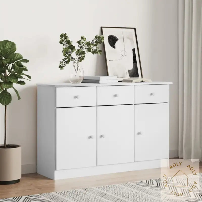 Denne praktiske skjenken i heltre furu er designet for å gi deg funksjonell oppbevaring og passer perfekt som møbel til hjemmet ditt. Den hvite finishen gir et rent uttrykk som matcher de fleste interiører, samtidig som det robuste materialet sørger for lang levetid.