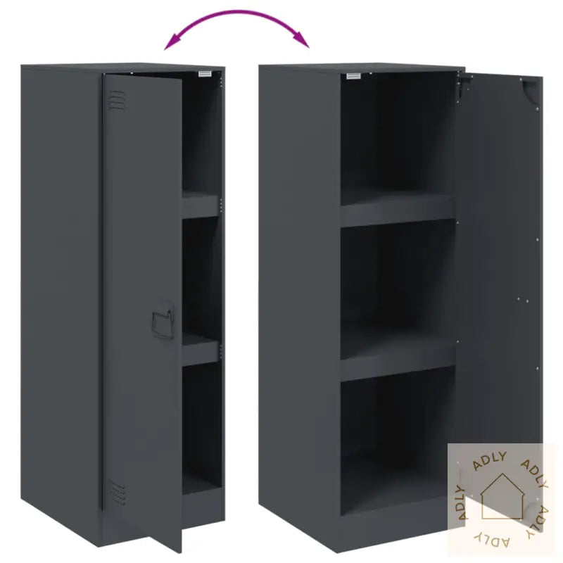 For å forhindre at produktet velter bør du bruke den medfølgende festeanordningen (følger ikke med).Farge: AntrasittMateriale: Kaldvalset stålMål: 34,5 x 39 x 107 cm (B x D x H)Maksimal lastekapasitet: 45 kgMed 3 romMed 1 dørMontering kreves: jaLegal Documents: