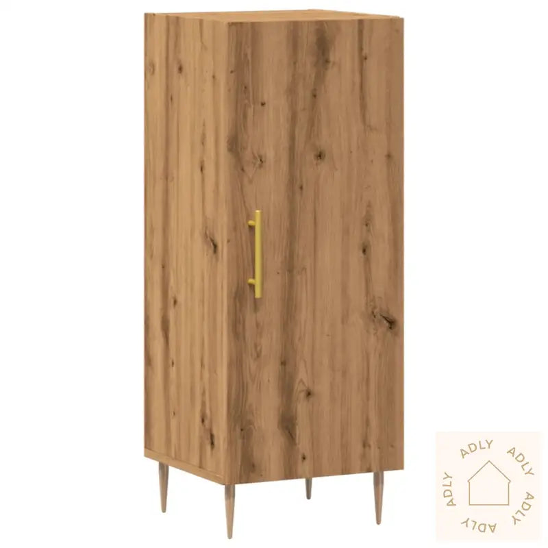 Stabilt og slitesterkt materiale: Skjenken er laget av konstruert tre – et materiale som er kjent for sin styrke, stabilitet og glatte overflate. Det tåler både fuktighet og daglig bruk uten å vri seg eller sprekke. Dette sikrer lang levetid og gjør at møbelet holder seg pent over tid, selv ved hyppig bruk.Praktiske håndtak: De innebygde håndtakene i dørene gjør skapet enkelt å åpne og lukke, samtidig som de gir møbelet et dekorativt løft. Du får både komfort, funksjon og stil på en gang.Praktisk dør: Med en lukket dør holdes alt du ønsker å skjule ute av syne, samtidig som innholdet beskyttes mot støv. Dette gjør det enklere å holde orden, enten det gjelder servise, bøker eller andre småting du vil stue vekk. Metallføtter: Skjenken står støtt på solide metallføtter, noe som ikke bare sørger for god stabilitet, men også gir et moderne preg til utseendet.Bred anvendelse: Denne skjenken er utrolig allsidig og kan brukes på flere rom – som baderomsskap, kjøkkenskap, eller bare som et elegant møbel til stue, soverom, gang, kontor eller hvor du trenger litt ekstra oppbevaringsplass. Det gjør den til et perfekt supplement uansett om du planlegger innrede huset eller behovet er nye møbler til hjemmet.Advarsel: