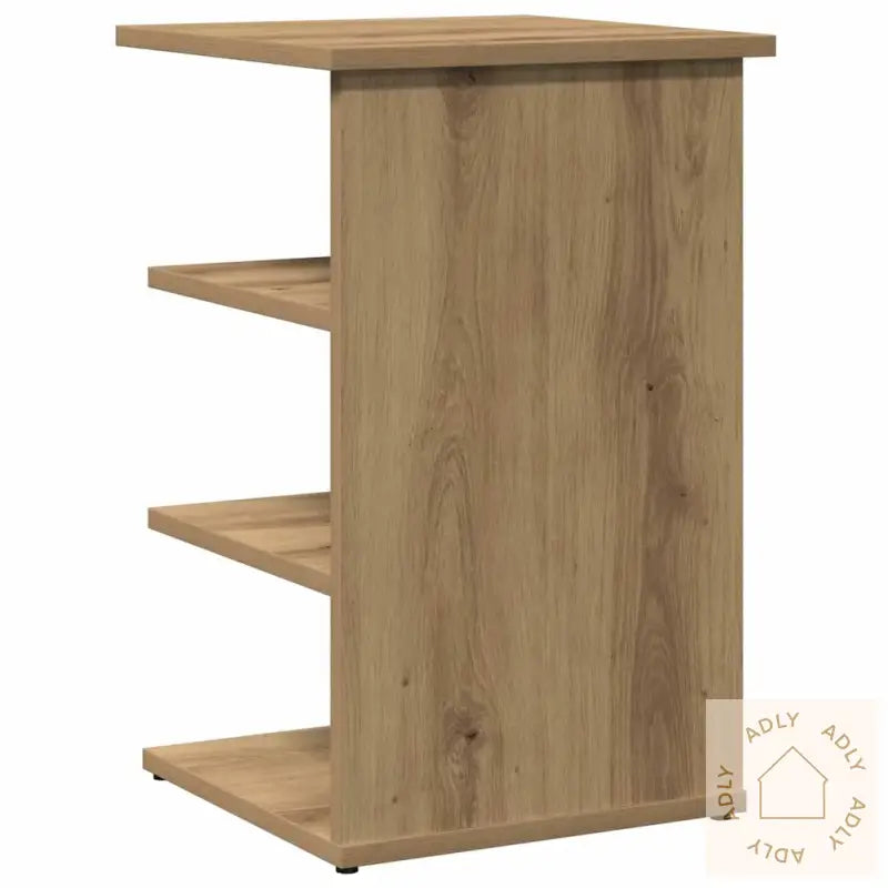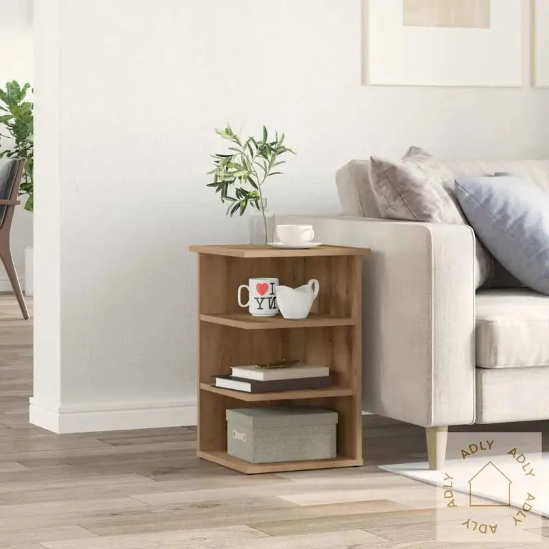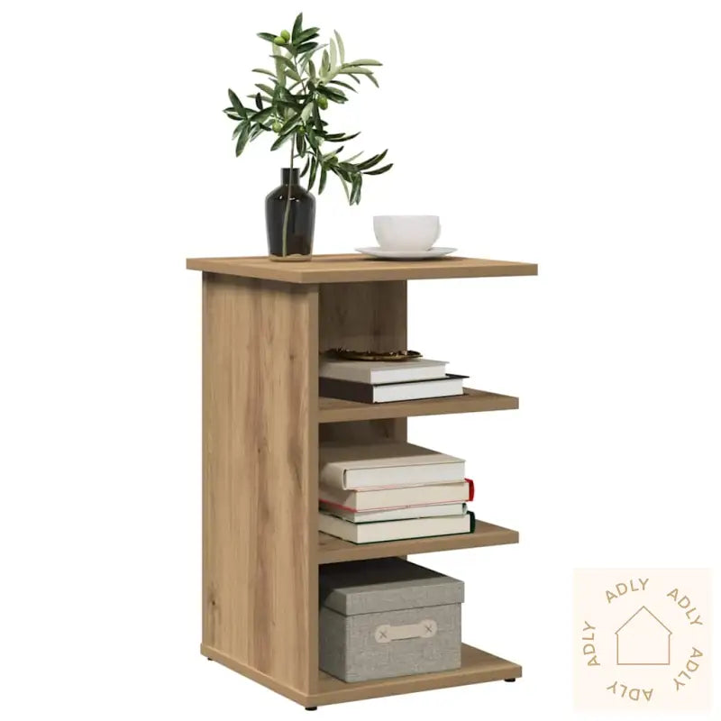 Slitesterkt materiale: Konstruert treverk sikrer høy kvalitet og gir møbelet en jevn, pen overflate. Materialet er kjent for styrke, god stabilitet og motstandsdyktighet mot fukt, noe som gjør det perfekt for daglig bruk. Oppbevaringsskapet tåler enkel rengjøring med en fuktig klut og holder seg pent over tid.Rikelig med lagringsplass: Bufféen har god plass til å samle alt fra servise og dekketøy til småting du trenger lett tilgjengelig i hverdagen. Hold orden på eiendelene og gjør hjemmet mer oversiktlig med smart oppbevaring.Visningsfunksjon: Den solide toppen gir perfekte muligheter til å dekorere – still ut favorittbilder, planter eller spesielle gjenstander og gi rommet et mer personlig preg.Praktiske dører: Festede skapdører skjuler enkelt alt du ikke vil ha fremme og beskytter tingene dine mot støv. Perfekt for et ryddig og stilrent uttrykk.Farge: artisan eikMaterialer: konstruert tre, metallSamlet mål: 35 x 35 x 55 cm (B x D x H)Maks. vektkapasitet (totalt): 60 kgMontering kreves: ja