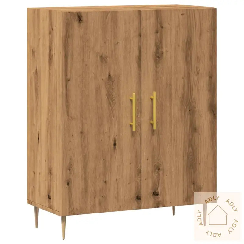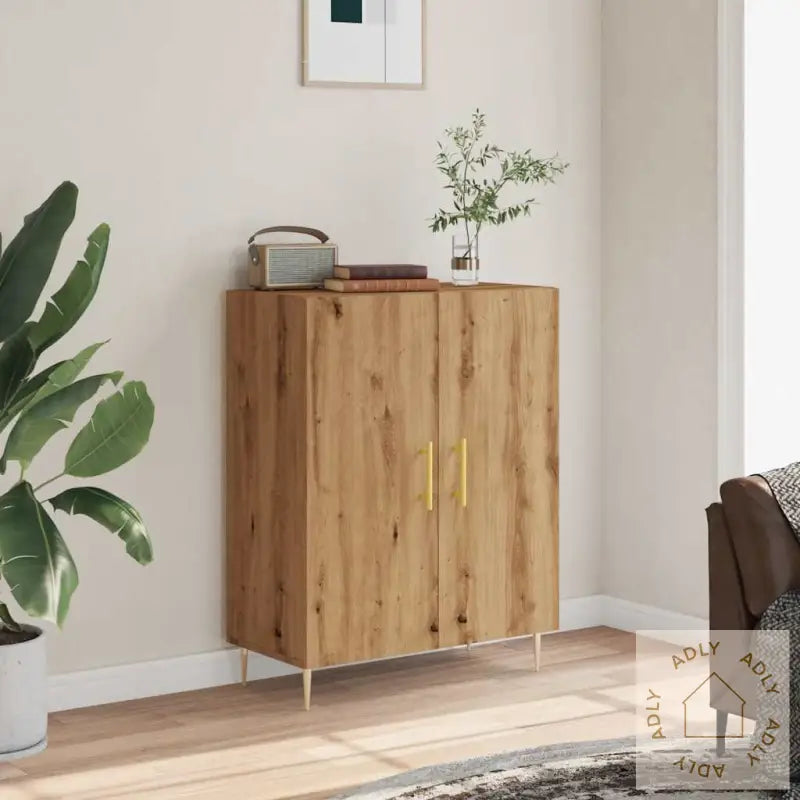 Slitesterkt materiale: Dette skapet er laget av høykvalitets konstruert tre med en silkemyk overflate. Det tåler hverdagsbruk, holder seg stabilt, og er motstandsdyktig mot fukt, noe som gjør det enkelt å vedlikeholde – bare tørk over med en fuktig klut for å holde det pent.Rikelig lagringsplass: Med god plass inni hjelper denne skjenken deg å holde styr på alt fra servise til bøker eller andre ting du bruker ofte. Skapet sørger for at hjemmet føles ryddig og oversiktlig, samtidig som du har det du trenger lett tilgjengelig.Visningsmuligheter: Skjenkens topp er perfekt for dekorasjoner, favorittbilder, noe grønt eller småpersonlige detaljer. Det gir deg muligheten til å sette ditt personlige preg på rommet.Stilrene metallføtter: De solide føttene i metall understreker skjenkens rene uttrykk, gir et moderne preg til interiøret og sørger for at møbelet står stødig.Advarsel: