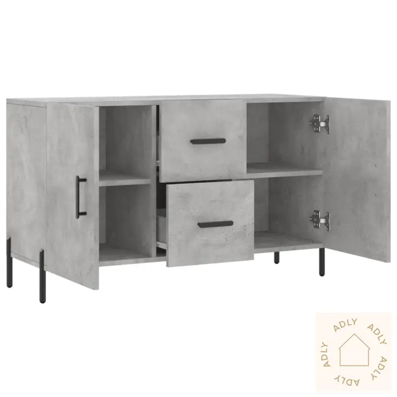 Slitesterkt materiale: Skjenken er laget av konstruert treverk av høy kvalitet, som har en glatt, elegant overflate. Det gir ikke bare et eksklusivt uttrykk, men sørger også for lang levetid takket være styrken, stabiliteten og motstanden mot fuktighet. Perfekt når du ønsker robuste og vakre møbler til hjemmet ditt.Metallben: De solide metallbena gir skjenken et moderne og avslappet preg. Samtidig får du en møbel med god stabilitet, ideelt både i stua og på soverommet.Rikelig med lagringsplass: Du får god oppbevaringsplass i denne skjenken – perfekt for å organisere alt fra servise til bøker, papir og småting. Skapet hjelper deg å få orden på hverdagen og holder alt du trenger, lett tilgjengelig, uten rot.Stabil og robust topp: Den solide toppen på skjenken er som skapt for å vise frem pyntegjenstander, grønne planter eller familiebilder. Her får du ekstra plass til å skape et personlig uttrykk i hjemmet ditt.Praktiske dører: Hold tingene dine rene og støvfrie ved hjelp av de lukkbare dørene. Smarte håndtak gjør det dessuten enkelt å åpne både skap og skuffer, så du får rask tilgang til det du trenger.Advarsel: