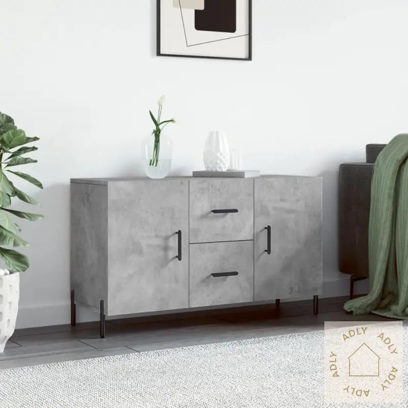 For din sikkerhet: Husk å bruke den medfølgende festeanordningen for å forhindre at skjenken velter.Farge: Betonggrå – et moderne valg som matcher de fleste møbler og interiørtrender.Materialer: Konstruert tre, metallStørrelse: 100 x 36 x 60 cm (L x B x H)Montering: Skjenken leveres flatpakket og krever enkel montering.Legal Documents: