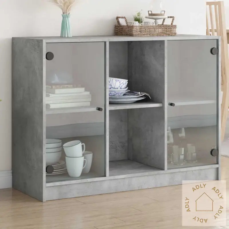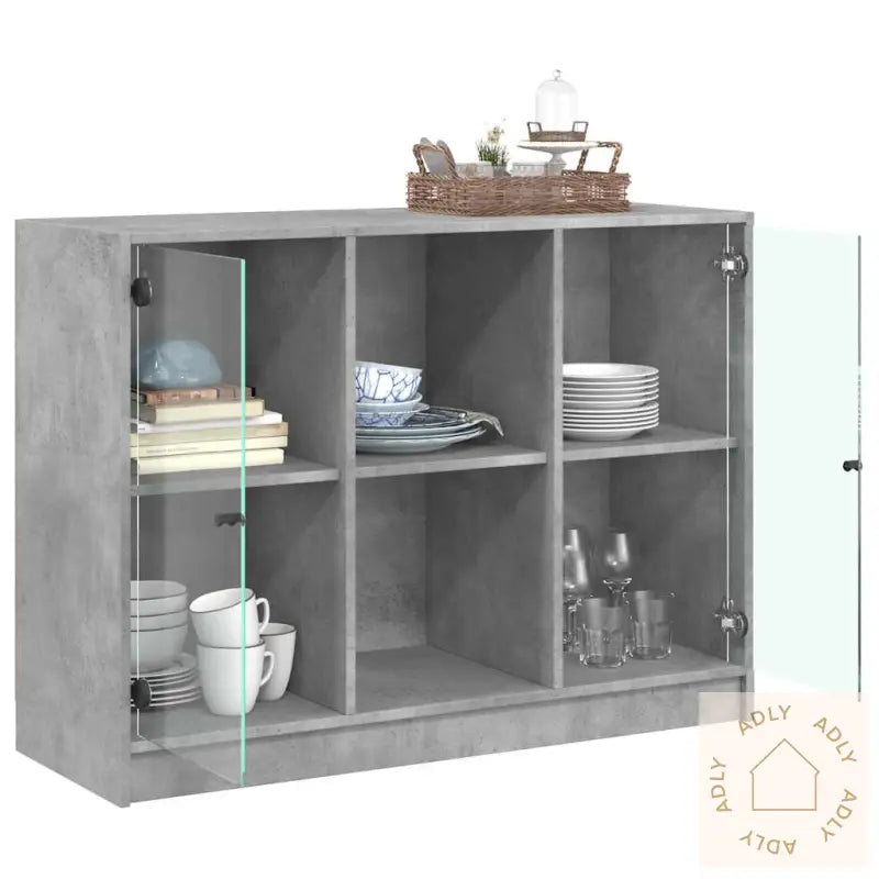 For å unngå at produktet velter, må du bruke den medfølgende festeløsningen og sikre skapet godt.Farge: betonggråMaterialer: konstruert tre, glassMål: 102 x 37 x 75,5 cm (B x D x H)Mål rom: 32 x 37 x 32 cm (B x D x H)Antall rom: 6Montering kreves: ja