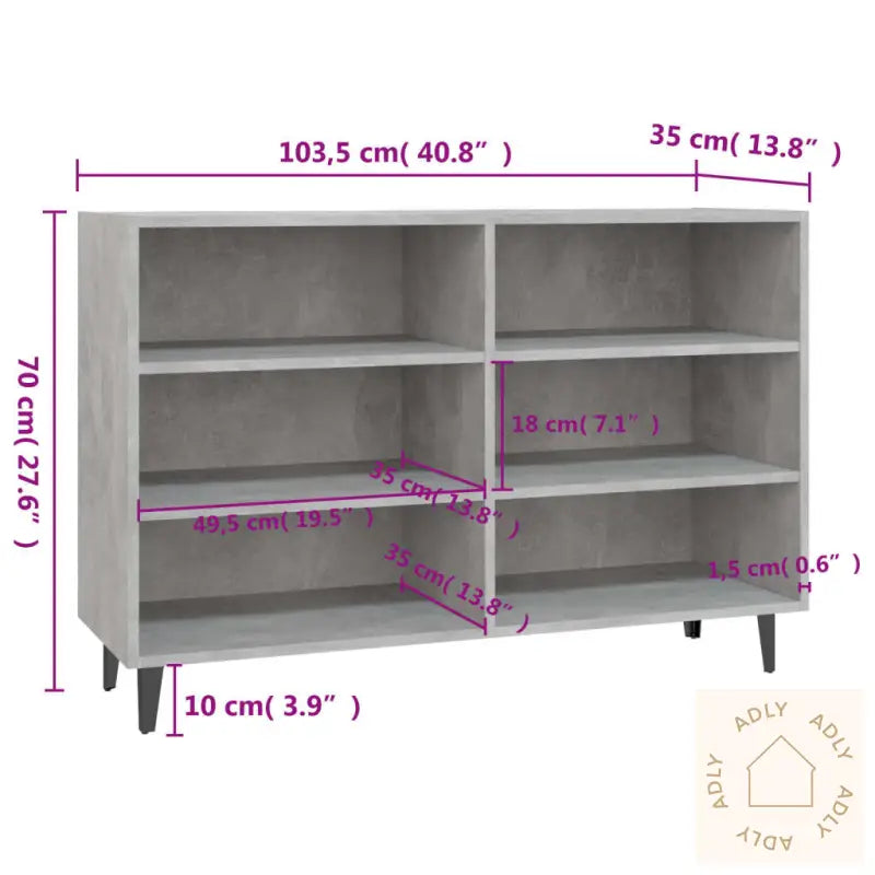 Enten du ser etter moderne bokhyller eller stående hyller som glir sømløst inn blant dine eksisterende møbler til hjemmet, er dette sideskapet et godt valg. Fargen i betonggrå gjør at den passer inn i mange interiørstiler, og de industrielle detaljene gir et urbant preg. Den solide konstruksjonen sikrer at dette møbelet holder seg pent lenge, selv med daglig bruk. Det er også enkelt å rengjøre – en fuktig klut er alt som trengs for å holde det pent og støvfritt. Dette gjør skjenken til et smart valg for alle som setter pris på funksjonalitet kombinert med moderne design og holdbarhet.