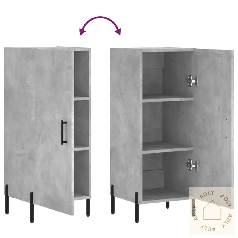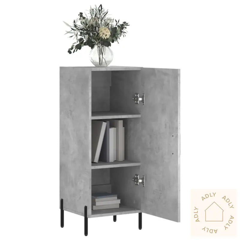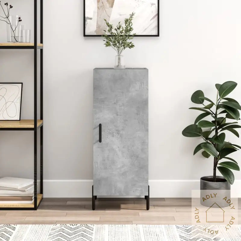 Skjenken er laget av høykvalitets konstruert tre, noe som gir en jevn og elegant overflate kombinert med solid styrke, stabilitet og holdbarhet. Materialet er motstandsdyktig mot fuktighet, slik at møbelet holder seg pent over tid.De moderne metallbena gir ikke bare et eksklusivt uttrykk, men bidrar også til ekstra stabilitet. Metallbenene gir skapet en lett og avslappende stil som passer til de fleste interiør, fra klassisk til mer moderne uttrykk.Med tre rom får du god plass til å holde hjemmet organisert og ryddig. Perfekt til oppbevaring av alt fra servise til bøker eller andre småting du har bruk for i hverdagen, slik at du alltid har det viktigste innen rekkevidde.En stabil og robust topp gir muligheten til å sette frem dekorative elementer. Her kan du vise frem dine favorittbilder, potteplanter, kunst eller andre dekorasjoner og la skjenken bli et blikkfang i hjemmet blant dine øvrige møbler.Praktisk dør gjør det enkelt å skjule tingene dine og beskytte dem mot støv. Det komfortable håndtaket på døren gir en enkel og behagelig åpning, så du raskt får tak i det du trenger og opprettholder et ryddig hjem.Advarsel: