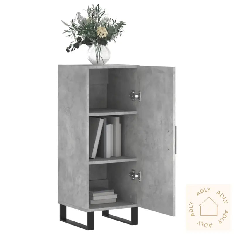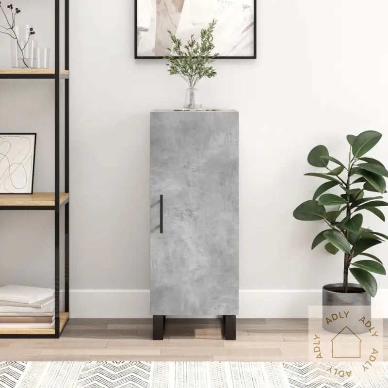 Slitesterkt materiale: Den er laget av konstruert treverk av høy kvalitet som føles glatt og solid, og sørger for styrke, stabilitet og lang levetid. Materialet motstår fuktighet, noe som gjør at skjenken holder seg pen lenge.Metallben: De solide metallbena bidrar til stabilitet samtidig som de gir et moderne uttrykk – en sikker vinner om du liker møbler med et stilrent preg.God lagringsplass: Med tre rom gir denne skjenken deg rikelig med plass til å organisere tingene dine – perfekt både til oppbevaring i stua eller på soverommet innenfor kategorien bokhyller og stående hyller.Robust topp: Den stabile topplaten er ideell for å vise frem interiørdetaljer som blomsterpotter, bilder eller andre dekorative favoritter.Praktisk dør: Døren holder innholdet fri for støv og rot. Takket være det brukervennlige håndtaket åpner og lukker du skapet enkelt, noe som gjør hverdagen litt lettere.Advarsel: