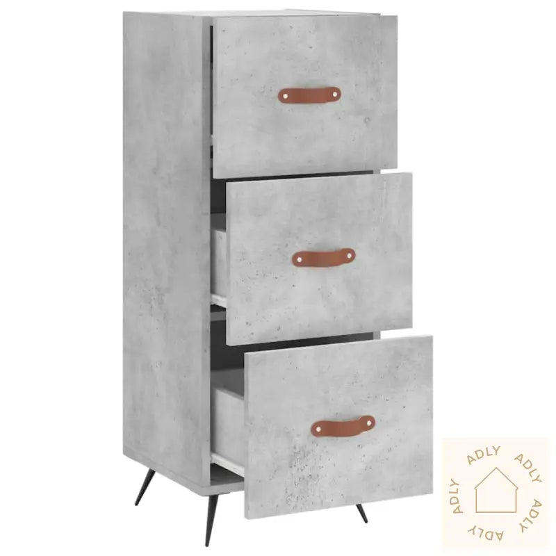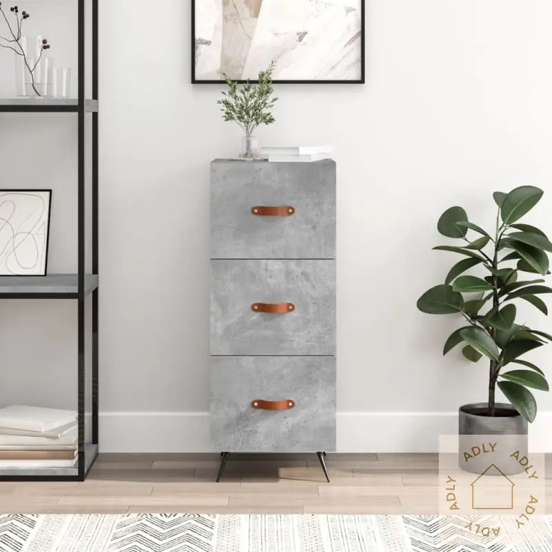 Slitesterkt materiale: Det konstruerte treverket har en jevn og fin overflate, samtidig som det gir høy styrke, god stabilitet og motstår fuktighet. Dette sikrer at skjenken holder seg pen og solid lenge, selv under daglig bruk. Møbler av denne typen er ideelle for deg som vil ha vedlikeholdsvennlige kvalitetsmøbler til hjemmet.Moderne metallben: De stabile metallbena gir hele skjenken et moderne preg og bidrar til å gi rommet et rolig uttrykk. I tillegg sørger de for at møbelet står stødig på gulvet og tåler belastning godt, noe som gir ekstra trygghet for deg som bruker møblene ofte.Rikelig lagringsplass: Skjenken har tre romslige skuffer som gjør det enkelt å holde orden på alt fra småting til større eiendeler. Du får god plass til oppbevaring og kan enkelt holde hjemmet ryddig og oversiktlig. Smarte løsninger som dette gjør denne skjenken til et praktisk møbelvalg.Solid topp til dekorasjoner: Den robuste toppen på skapet gir deg plass til å style med dekorative elementer, rammer eller grønne planter – og skaper et personlig uttrykk i stua, gangen eller soverommet ditt.Advarsel: