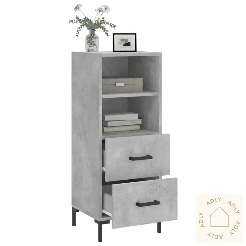 Slitesterkt materiale: Skjenken er laget av konstruert treverk av eksepsjonell kvalitet, med en glatt og elegant overflate. Dette materialet gir høy styrke, god stabilitet og motstår både fuktighet og slitasje. Perfekt for deg som vil investere i holdbare møbler til hjemmet.Stilige metallben: De robuste bena i metall gir skapet et moderne uttrykk og tilfører interiøret en rolig, industriell stil. I tillegg sørger de for at møbelet står stødig – uansett hva du setter på det.Smart oppbevaring: Skjenkens 2 praktiske skuffer og 2 åpne rom sørger for at du får rikelig med oppbevaringsplass. Her kan du enkelt organisere alt fra servise og glass til bøker, dokumenter eller dekor. Alt ligger lett tilgjengelig, uten at det blir rot.Sterk og funksjonell topp: Topplaten er ideell for å sette personlige preg på interiøret – vis fram favorittdekor, bilder eller potteplanter, og skap et unikt uttrykk blant dine øvrige møbler til hjemmet.Advarsel: