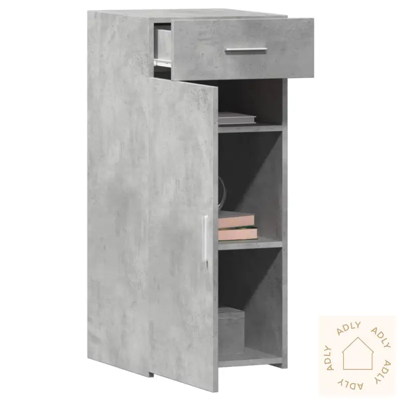 For å unngå at produktet velter, må du bruke den medfølgende festeanordningen slik at skjenken står trygt – særlig hvis du oppbevarer tyngre gjenstander eller har barn i huset.Farge: betonggråMateriale: konstruert treMål: 40 x 42,5 x 93 cm (B x D x H)Montering kreves: jaLegal Documents: