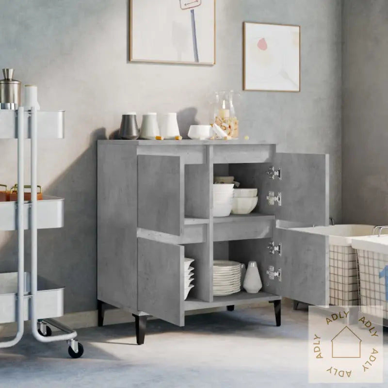 Skjenken er laget av slitesterkt konstruert treverk, som gir en robust og stabil struktur. Materialet har en jevn overflate og er motstandsdyktig mot fuktighet, noe som sikrer at denne møbeln varer lenge og holder seg pen i bruk.Takket være god lagringsplass gir skapet deg muligheten til å holde daglige eiendeler pent organisert og enkelt tilgjengelig. Perfekt for alt fra servise til bøker og småting!Den glatte toppen på oppbevaringsskapet gir deg en fin mulighet til å vise frem personlige favoritter – for eksempel bilder, dekorasjoner, planter eller blomster – noe som virkelig kan sette et personlig preg på rommet. Det passer også perfekt sammen med andre møbler, bokhyller og stående hyller i moderne hjem.Godt å vite: