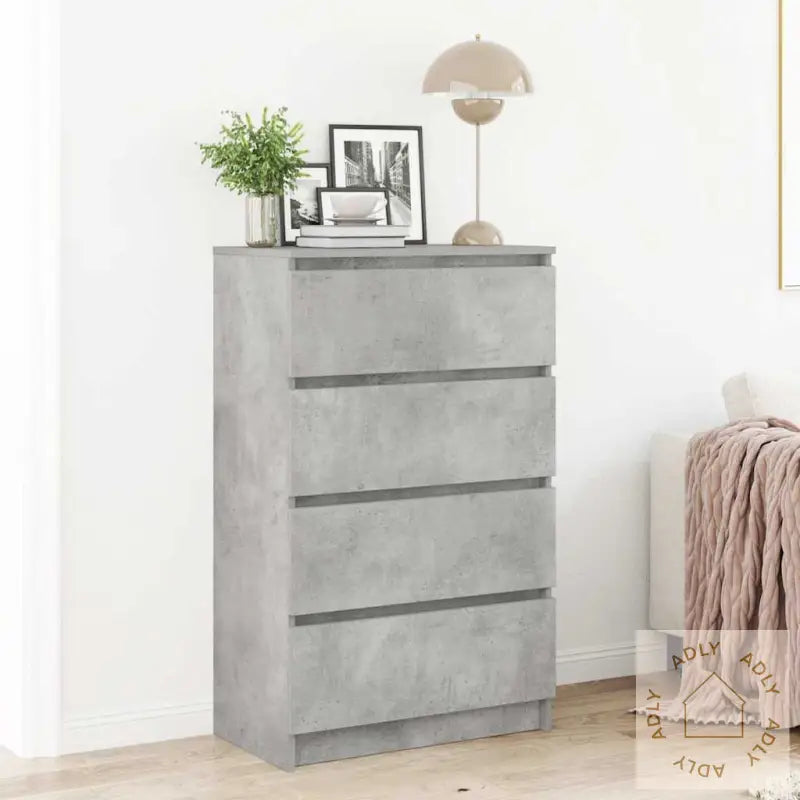 Farge: betonggråMål: 60 x 35 x 98,5 cm (B x D x H)Materiale: konstruert treMed 4 skufferLett å rengjøreVennligst merk: Skrue(r) og plugg(er) for innsiden av veggen følger ikke med. Velg skruer og plugger som passer til akkurat dine vegger, og ta kontakt med fagfolk hvis du er usikker. Følg instruksjonene nøye gjennom hele monteringen.