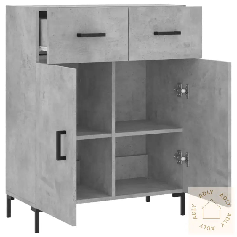 Denne moderne skjenken av tre har et tidløst design som gjør den til et flott valg for deg som vil oppdatere hjemmet med stilige og praktiske møbler. Skjenken passer perfekt inn i ulike rom, enten du vil bruke den som et ekstra oppbevaringsmøbel i stua, gangen eller på soverommet. Den betonggrå fargen gir et moderne uttrykk som lett matcher andre møbler til hjemmet ditt.