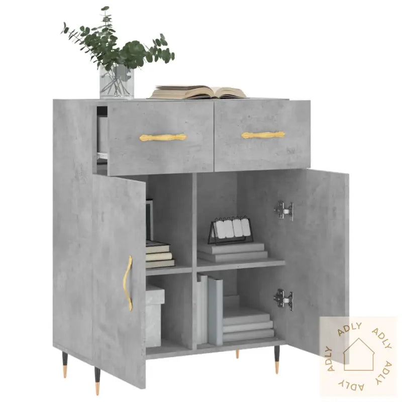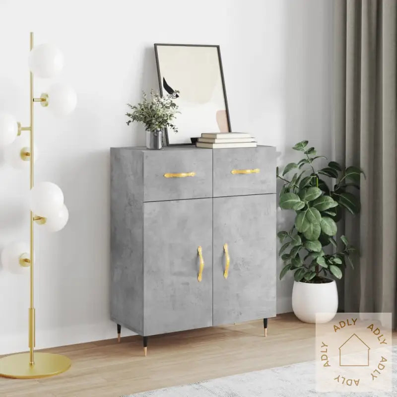 For din sikkerhet: For å forhindre at møbelet velter, bør du alltid bruke den medfølgende festeanordningen. Dette er spesielt viktig hvis du har barn hjemme eller hvis skjenken skal stå i et område med mye aktivitet.Farge: betonggrå – en nøytral farge som matcher det meste av både klassiske og moderne møbler.Materialer: konstruert tre og metall – slitesterkt og perfekt for både hverdag og fest.Samlet mål: 69,5 x 34 x 90 cm (L x B x H) – plassbesparende, samtidig som du får mye lagringsmulighet.Montering kreves: ja – enkel montering etter medfølgende veiledning.Legal Documents: