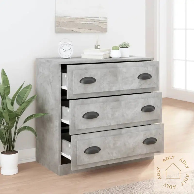 Solid materiale: Skjenken er laget av konstruert tre av høy kvalitet, kjent for sin glatte overflate. Materialet gir styrke, stabilitet og motstand mot fukt, så dette møbelet er det bare å ha glede av i mange år fremover.Rikelig med lagringsplass: Sideskapet har god plass til å organisere alt fra servise og glass til dine daglige nødvendigheter. Med romslig oppbevaring slipper du rot og har alltid det viktigste lett tilgjengelig.Visningsfunksjon: Toppen av skapet er solid og perfekt til å vise frem favorittpynten din, stilige fotorammer eller grønne potteplanter – enten du vil fremheve personlige detaljer eller pynte litt ekstra i hjemmet.Advarsel: