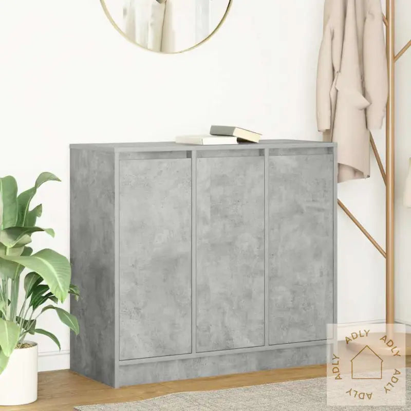 For å forhindre at produktet velter, bør du alltid bruke den medfølgende festeanordningen for å sikre skjenken til veggen.Farge: betonggråMateriale: konstruert treTotalmål: 85 x 34 x 76 cm (B x D x H)Antall dører: 3Antall hyller: 3Totalt maks. vektkapasitet: 60 kgMaks. vektkapasitet på hylle: 20 kgMontering kreves: ja