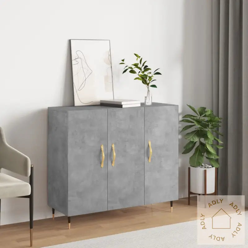 For å forhindre at skjenken velter må du bruke festeanordningen som følger med produktet.Farge: betonggråMaterialer: konstruert tre, metallSamlet mål: 90 x 34 x 80 cm (L x B x H)Montering kreves: jaLegal Documents: