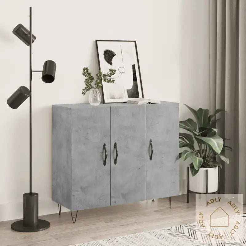 Skjenken er laget av slitesterkt konstruert treverk, som gir den en jevn overflate, solid styrke og lang levetid. I tillegg gjør materialene at møbelet tåler daglig bruk og er motstandsdyktig mot fuktighet, noe som gir minimal vedlikehold for deg.De solide metallbena gir ikke bare ekstra stabilitet, men tilfører også møbelet et moderne og rolig uttrykk – perfekt for deg som liker å kombinere forskjellige stiler blant dine møbler, bokhyller og stående hyller.Du får god lagringsplass i denne skjenken. Oppbevar servise, bøker, dokumenter eller andre ting du ønsker å ha lett tilgjengelig, men organisert og ute av synet. Ideell for deg som vil ha orden blant dine møbler til hjemmet, og holde alt pent og ryddig.Den stabile og robuste toppen på skapet gir deg muligheten til å vise frem dekorative elementer, bilder eller potteplanter, og blir en naturlig plass for personlige detaljer som gir hjemmet ditt karakter.Med de praktiske dørene holder du alle eiendeler støvfrie og usynlige, samtidig som de elegante håndtakene gjør det enkelt å åpne og lukke. Alt er designet for enkel og effektiv bruk i hverdagen, uten unødvendige kompliserte løsninger.Advarsel: