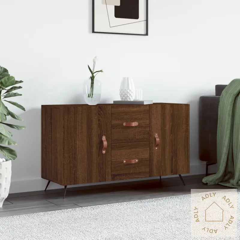 Denne moderne skjenken i brun eik er designet for å være både funksjonell og tidløs, noe som gjør den til et førsteklasses tillegg blant møbler til hjemmet. Med sitt elegante utseende passer denne skjenken like godt inn i stuen som på soverommet eller spisestuen.
