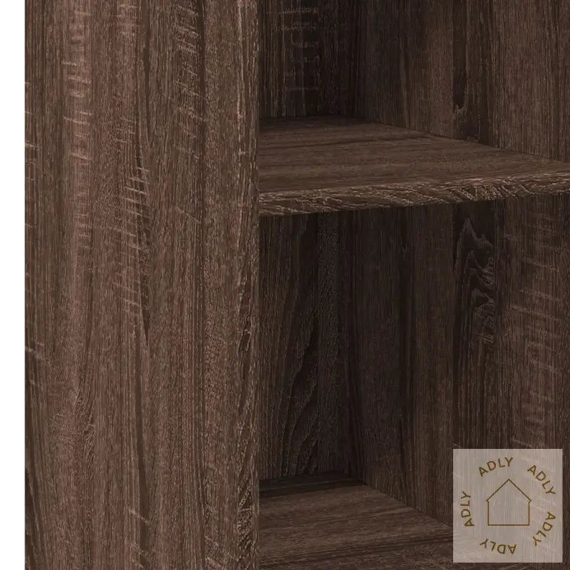 Holdbart materiale: Skjenken er laget av konstruert tre av høy kvalitet, kjent for sin jevne overflate, solide styrke og gode motstand mot fuktighet. Dette gir både struktur og lang levetid.Rikelig med lagringsplass: Du får god plass til å organisere eiendelene dine, slik at alt fra servise til pyntegjenstander holdes ryddig og lett tilgjengelig bak rene linjer.Enkel å rengjøre: Skapet krever minimalt med vedlikehold – det holder å tørke over med en fuktig klut for å holde det pent og fresht år etter år.Tidløs design: Med sitt minimalistiske uttrykk og elegante linjer tilfører denne oppbevaringshyllen et moderne, men tidløst preg på innredningen. Fargen brun eik gjør at den enkelt matcher andre møbler og skaper en lun atmosfære.Advarsel: