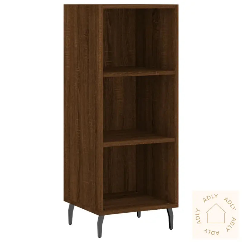 Slitesterkt materiale: Det konstruerte treverket av høy kvalitet gir en glatt overflate og sørger for at skjenken holder seg stabil og solid over tid. Materialet motstår fuktighet, som gjør at skjenken egner seg godt til daglig bruk og beholder utseendet sitt lenger.Rikelig med lagringsplass: Med flere hyller og god plass bak skapdørene får du smart oppbevaring til alt fra servise og glass til andre nødvendigheter du ønsker å ha lett tilgjengelig og organisert i hjemmet ditt.Visningsfunksjon: Toppen av denne skjenken i brun eik gir god plass til å vise frem dine favorittdekorasjoner, bilder eller blomster, slik at du enkelt kan gi rommet ditt et personlig preg og skape en innbydende atmosfære.Advarsel: