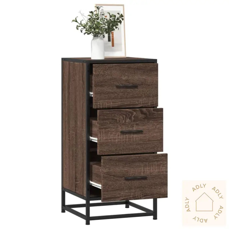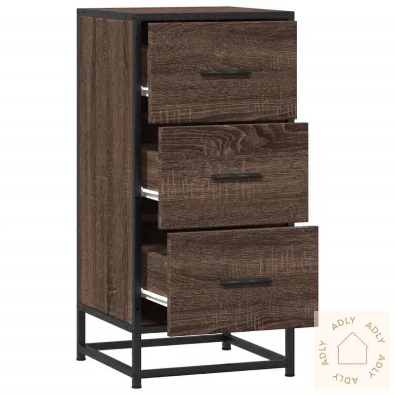 Stabil og langvarig ramme: Med en robust metallramme inspirert av industriell stil, får interiøret et moderne preg, samtidig som skapet holder seg stabilt og tåler hverdagsbruk år etter år. Metallet beskytter dessuten mot rust, noe som forlenger levetiden til møbelet.Motstandsdyktig materiale: Konstruert tre gir en jevn, pen overflate, og motstår både fukt, sprekker og vridning. Det er et slitesterkt valg for møbler til hjemmet hvis du ønsker bokhyller og stående hyller eller skjenker som holder seg fine lenge og krever minimalt med vedlikehold.Rikelig med oppbevaringsplass: Med tre romslige skuffer kan du organisere alt fra småting og papirer til annet du vil ha lett tilgjengelig. Det gjør det enkelt å holde hjemmet ryddig og oversiktlig.Praktisk dør: Skapdøren skjuler innholdet på en diskré måte, så du kan oppbevare tingene dine trygt og beskyttet bak lukkete dører, uten at det bidrar til rot i rommet.Advarsel: