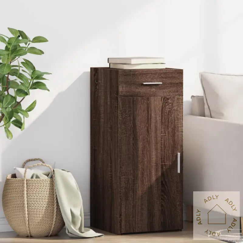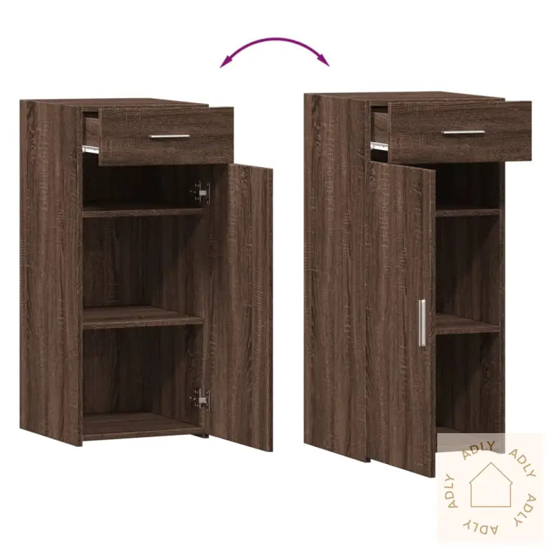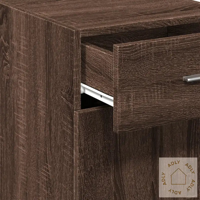 Holdbart materiale: Skjenken er laget av konstruert tre med høy kvalitet, kjent for sin glatte overflate og motstandsdyktighet mot fuktighet. Dette gjør møblet solid, stabilt og godt egnet for daglig bruk.Rikelig med lagringsplass: Med både skap og skuff får du god plass til å sortere tingene dine som du ønsker, enten det er servise, hageutstyr eller andre favoritter. Alt holder seg lett tilgjengelig, men skjult for å bevare et ryddig hjem.Enkel å rengjøre: Skapets overflater gjør det enkelt å vaske bort støv og flekker – det holder med en fuktig klut, så vedlikeholdet blir minimalt.Praktisk dør: Bruk døren for å skjule det du ikke ønsker å ha fremme; på den måten bidrar skjenken til at hjemmet alltid ser ryddig ut.Advarsel:
