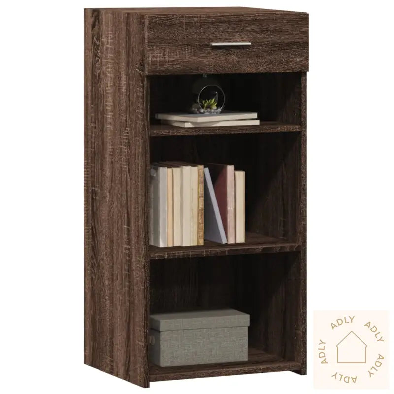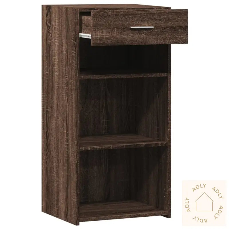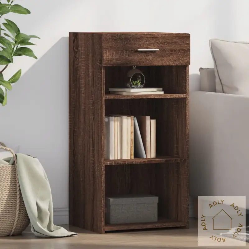 Holdbart materiale: Skapet er laget av konstruert treverk av høy kvalitet, kjent for sin styrke, stabilitet og motstand mot fukt. Overflaten er glatt, noe som gir et pent utseende og gjør det solid til daglig bruk.Generøs lagringsplass: Med skuffer og godt med hylleplass får du orden på alt du vil ha lett tilgjengelig, enten det er servise, tekstiler eller andre eiendeler. Denne skjenken hjelper deg å holde det ryddig og organisert.Enkel rengjøring: Skapet krever lite vedlikehold og kan enkelt tørkes av med en fuktig klut, slik at det holder seg pent år etter år.Tidløst design: Den har rene, enkle linjer og et moderne, minimalistisk uttrykk som passer sammen med de fleste stiler og gjør den lett å matche med andre bokhyller og stående hyller eller hagemøbler i brun eik.Advarsel: