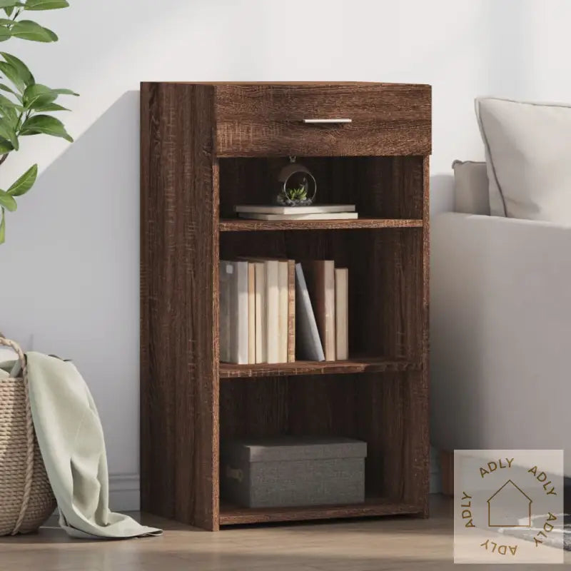 Holdbart materiale: Skjenken er laget av konstruert tre med høy kvalitet, noe som gir en jevn og pen overflate. Dette materialet er kjent for å være solid, stabilt og motstandsdyktig mot fuktighet, noe som gjør at møbelet holder seg pent lenge selv ved daglig bruk.Rikelig med lagringsplass: Med både skuff og skap får du rikelig med oppbevaringsplass – perfekt for å holde servise, bøker eller andre viktige ting organiserte og lett tilgjengelige når du trenger dem.Enkel å rengjøre: Overflaten er enkel å holde ren – du bare tørker over med en fuktig klut ved behov, så ser møbelet fort nytt ut igjen. Det gjør at denne skjenken ikke krever mye ekstra vedlikehold.Tidløs design: Med sitt minimalistiske uttrykk og rette linjer passer denne oppbevaringshyllen elegant inn i de fleste hjem, uansett om du foretrekker moderne eller klassisk stil. Skjenkens design gjør den enkel å kombinere med andre møbler, og gir et tidløst preg som gjør at den alltid føles aktuell.Advarsel: