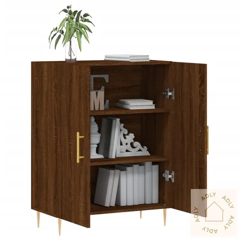 Det romslige skapet hjelper deg å holde orden på alt fra servise til hverdagsartikler, slik at alt du trenger er lett tilgjengelig og oversiktlig organisert – perfekt for deg som ønsker praktiske møbler til hjemmet.Topplaten fungerer ideelt til å vise frem dekorative gjenstander, bilder eller små grønne planter som gir personlig preg i hjemmet ditt.De solide metallføttene gir ikke bare en moderne og stilren finish som passer inn med ulike interiør, men sørger også for ekstra stabilitet.Advarsel: