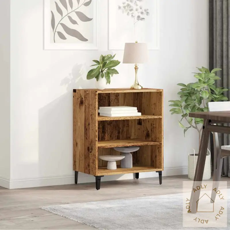 Stabilt og slitesterkt materiale: Produsert i konstruert tre, et materiale som er kjent for å være både robust og holdbart. Overflaten er jevn og motstandsdyktig mot fuktighet, vridning og sprekker, som gir deg et allsidig og pålitelig møbel. Dette gjør at skjenken egner seg godt sammen med både bokhyller og stående hyller, og matcher ulike typer interiør.Rikelig med oppbevaringsplass: Du får god plass til å organisere borddekor, servise, glass, tekstiler eller andre ting du ønsker å ha lett tilgjengelig, men ikke nødvendigvis fremme hele tiden. Slik får du enkel tilgang til alt du trenger og bedre orden i hjemme dine møbler.Robust bordplate: Den solide topplaten er ideell for dekor, bilder eller planter og tåler daglig bruk – enten det er i gangen, på kjøkkenet, eller sammen med andre møbler.Metallføtter: De stilrene metallføttene gir skjenken et moderne uttrykk og ekstra stabilitet. Dette bidrar til en trygg og robust løsning for oppbevaring i hjemmet.Allsidig bruk: Skjenken fungerer like bra som baderomsskap, kjøkkenskap eller et elegant oppbevaringsmøbel for soverom, gang, kontor eller stue. Uansett om du har behov for øvrige hagemøbler eller innendørs møbler, passer dette sideskapet inn.Advarsel: